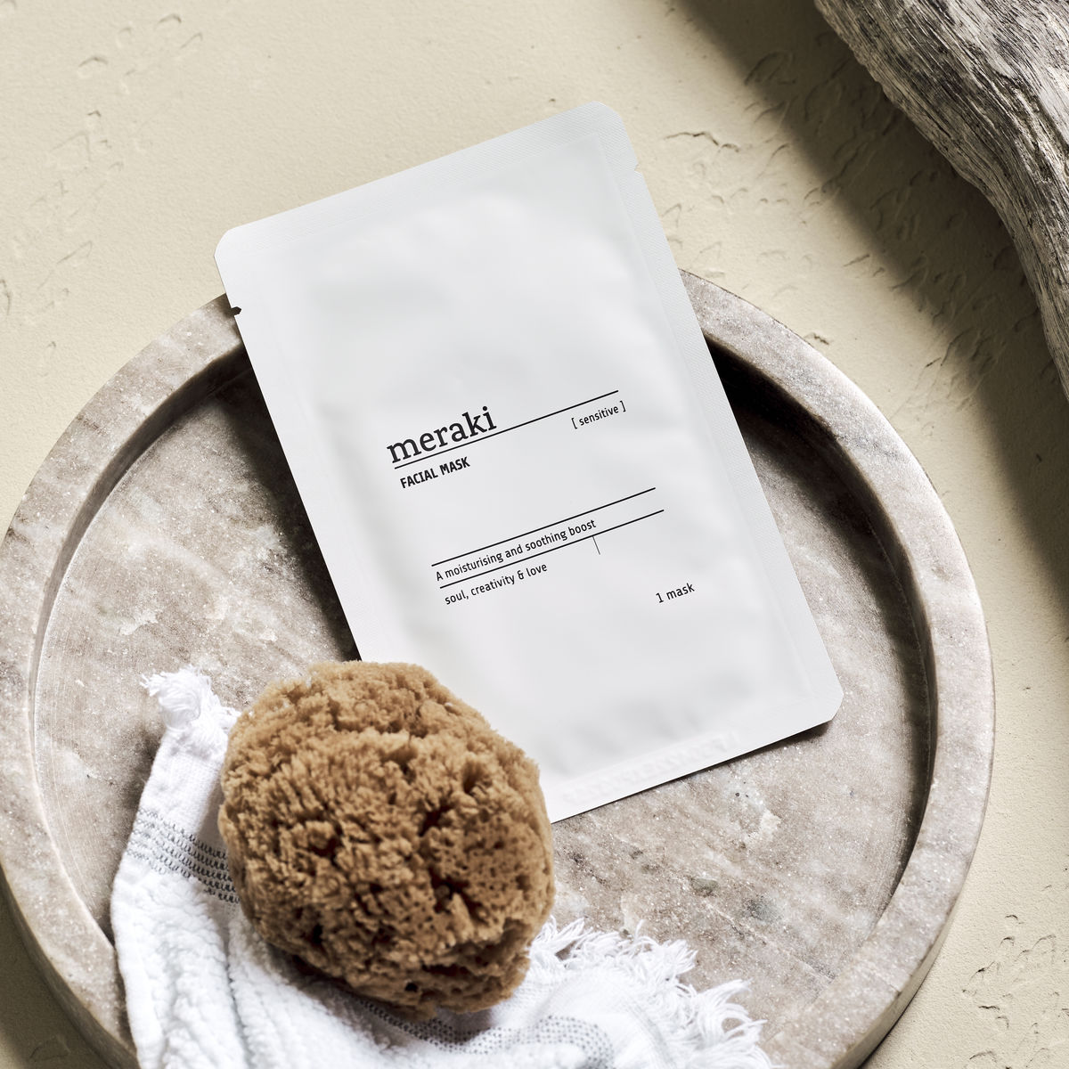 Gi ansiktet ditt et fuktighetsgivende boost med denne sheet-masken fra Meraki. Ekstrakter fra aloe vera, agurk og tomat fukter og pleier huden, mens ekstrakter fra kamille og rosmarin også har en beroligende effekt. Urten Centella Asiatica er kjent for sin beroligende effekt og gir ekstra fuktighet.