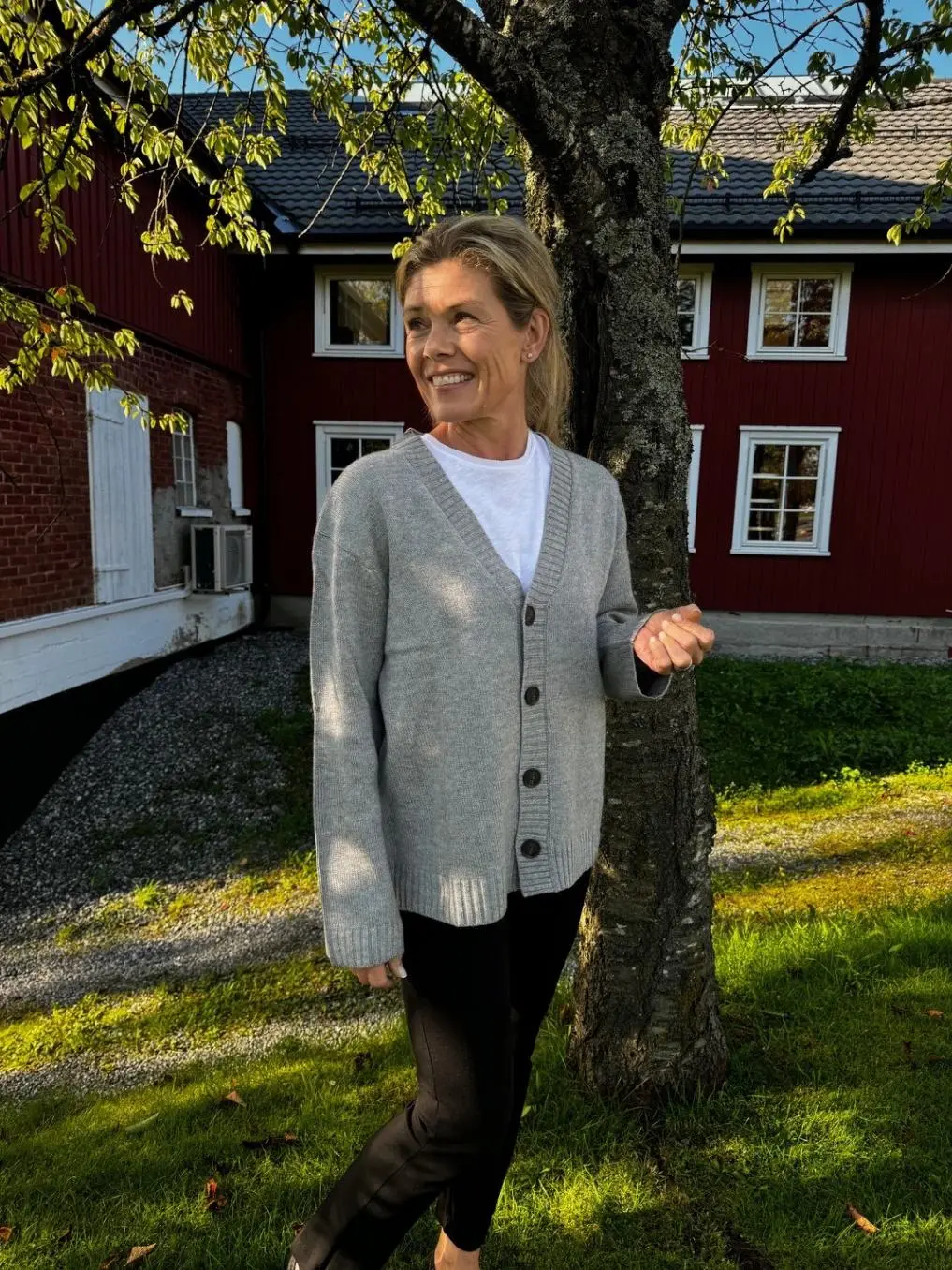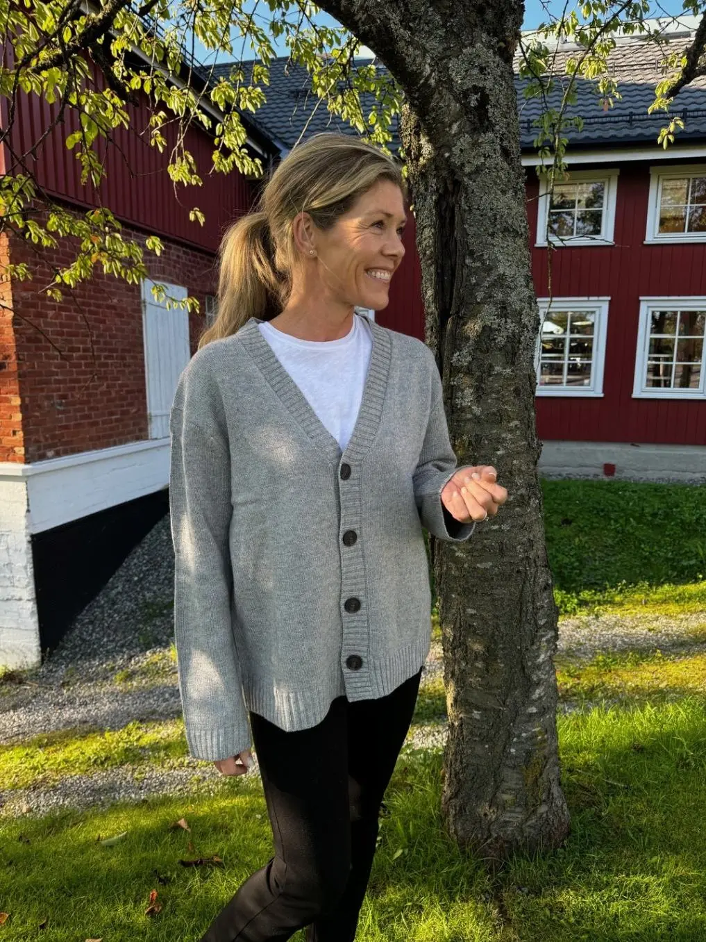 Ariel Cardigan fra Bruun & Stengade er laget av en luksuriøs blanding av lammeull og viskose, som gir både varme og mykhet. Med sin avslappede passform, V-hals og brede skuldre, kombinerer den uanstrengt stil og komfort. De løse ermene og ribbestrikkede detaljene gjør den perfekt for både hverdags- og formelle antrekk. De brunsvarte knappene tilfører en elegant touch, og lengden til hoften gir en balansert silhuett. For en tettere passform, velg en størrelse mindre.