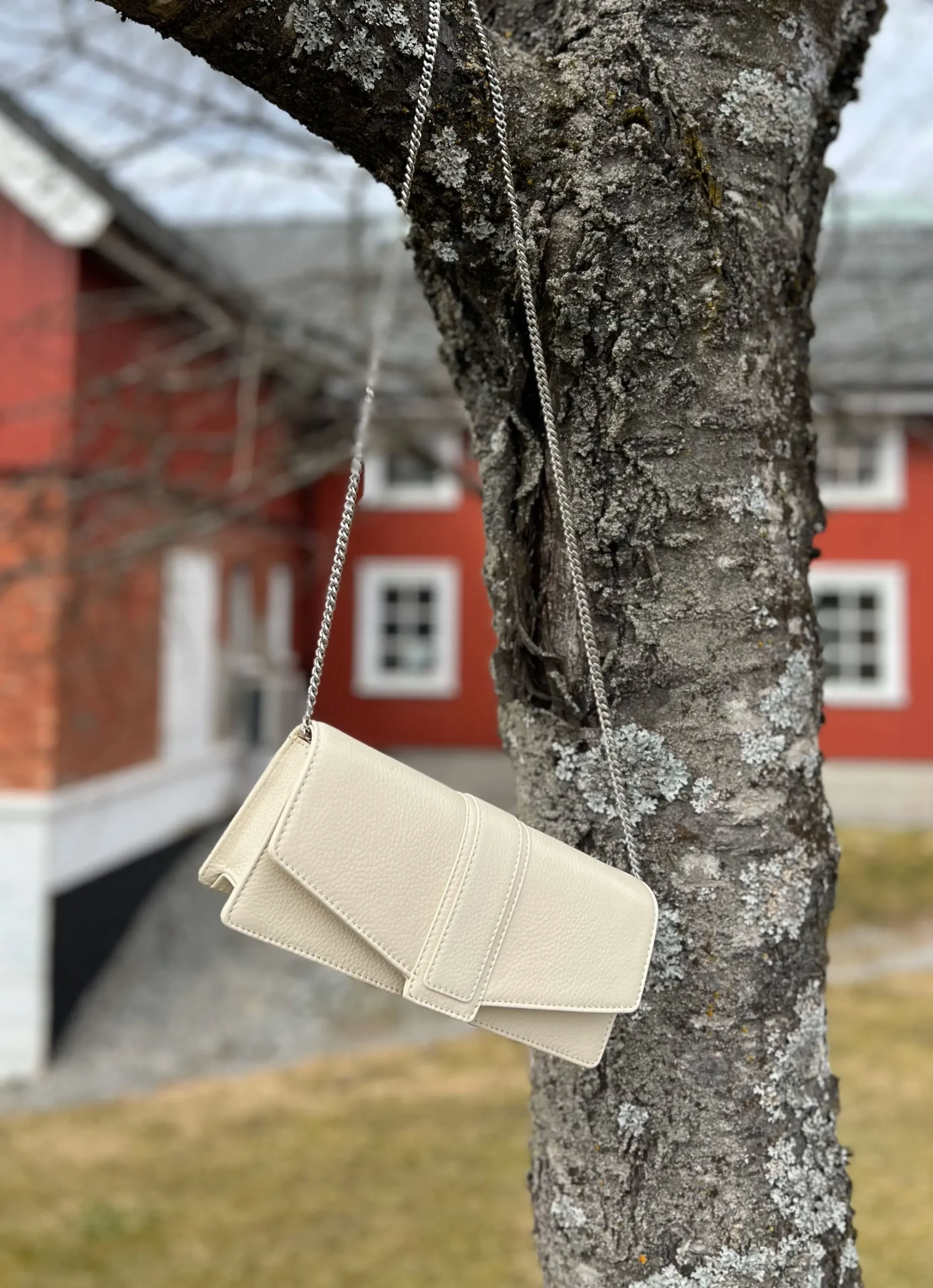 Bex fra Markberg har et stort rom innvendig og lukkes med magnet knapp. Den har et cross body-kjede som også kan oppbevares innvendig i vesken. Farget skinn basert på naturlige materialer. Teksturen og fargen kan variere, noe som er den naturlige egenskapen til skinn.