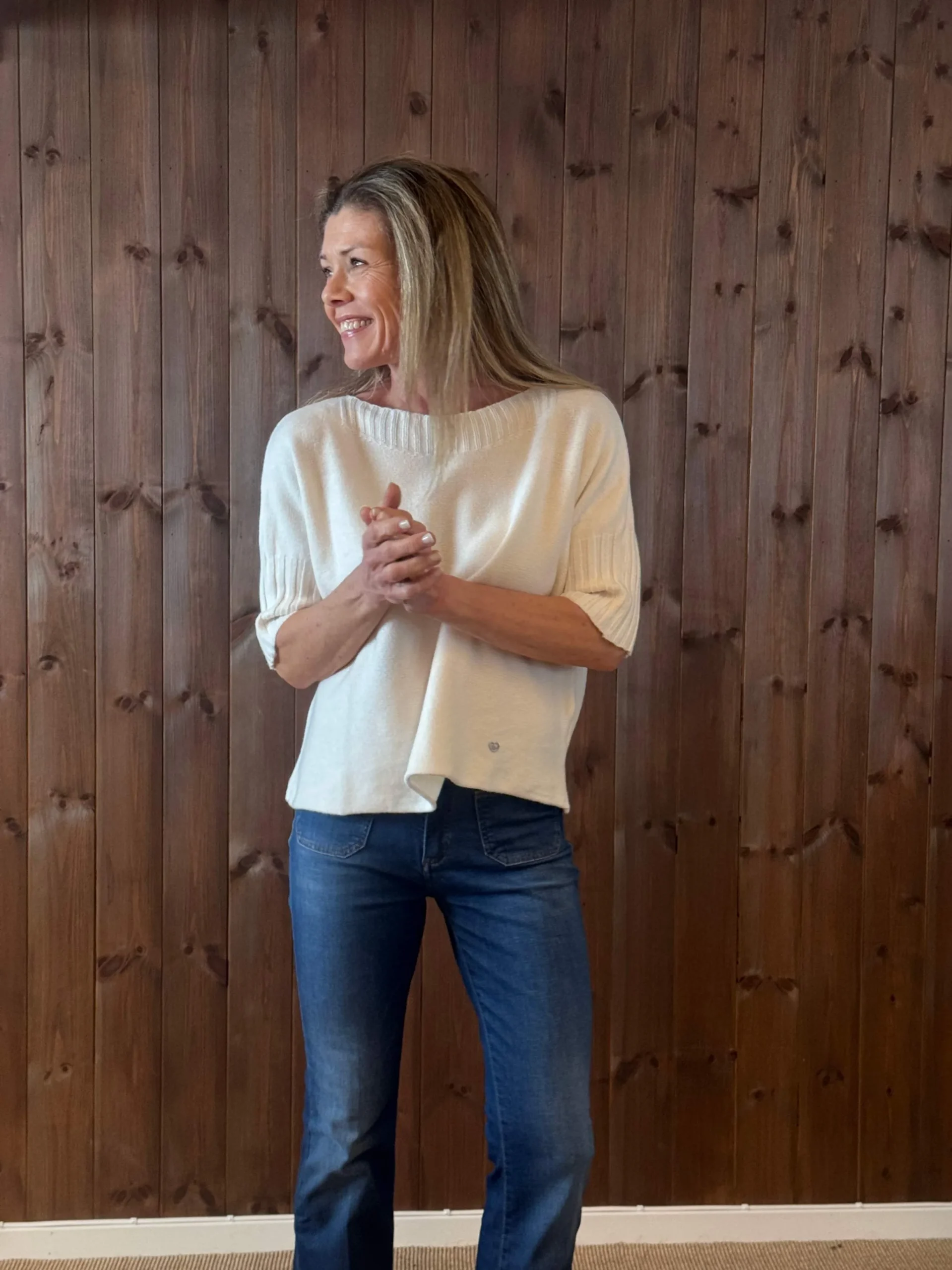 Boatneck genser off-white