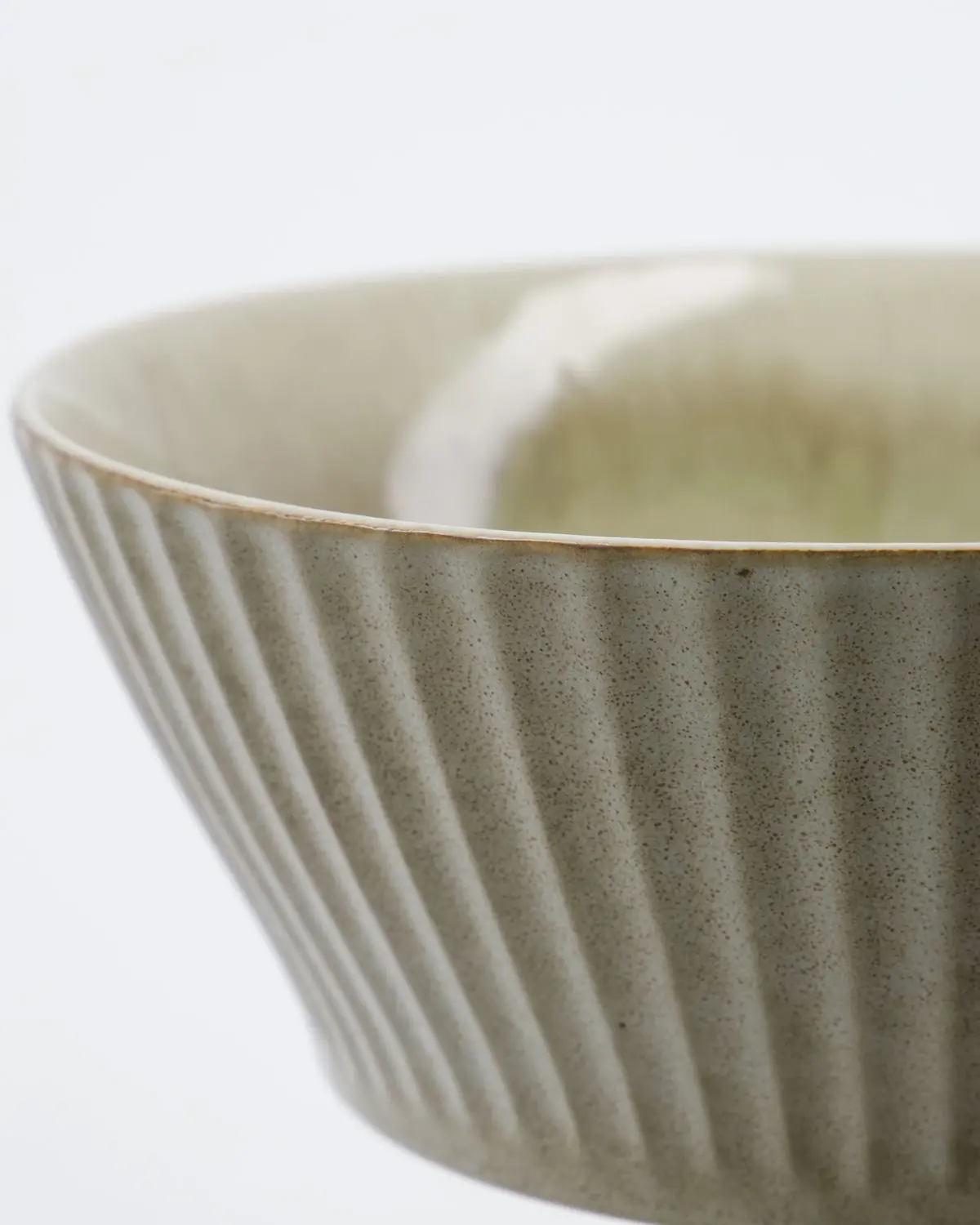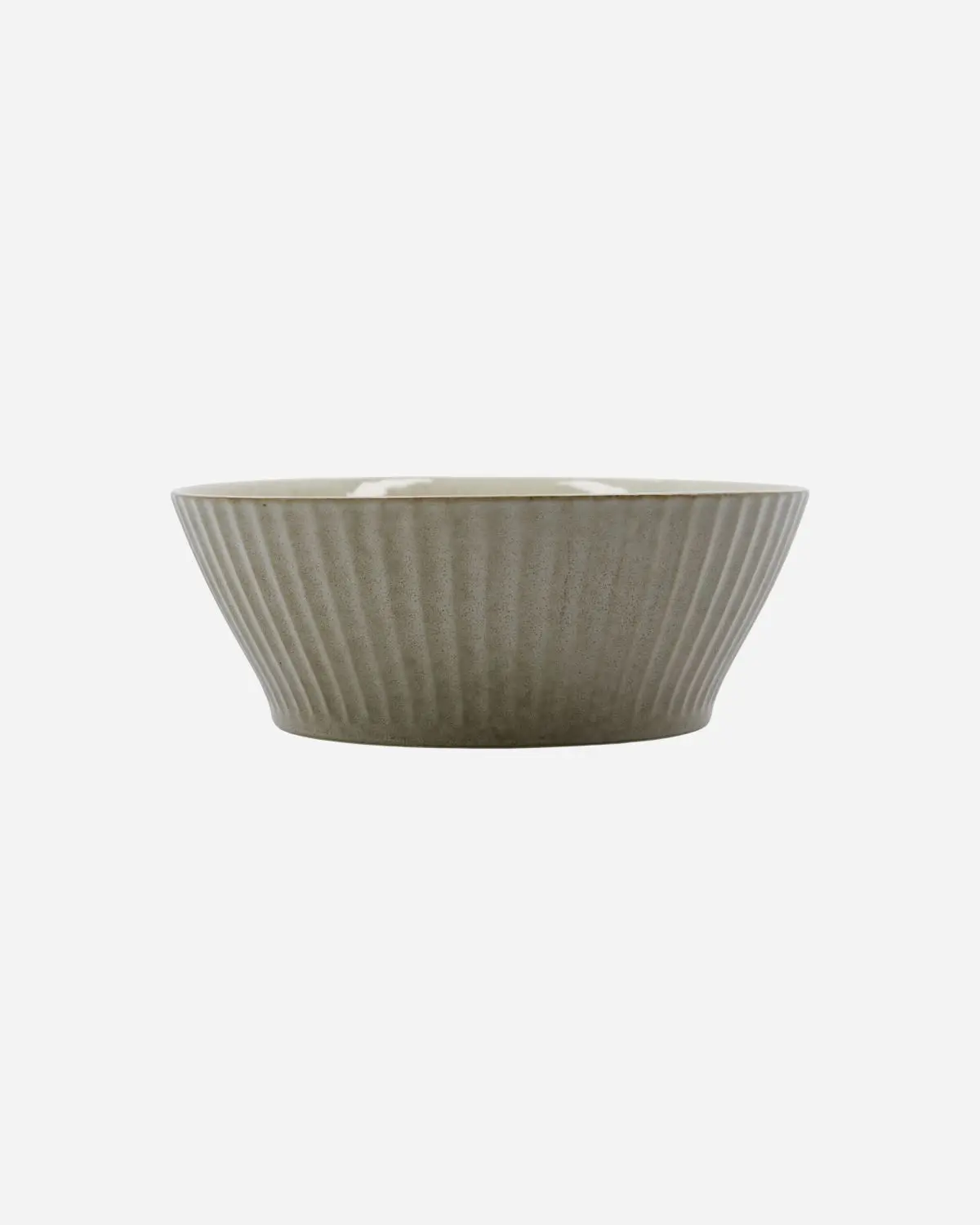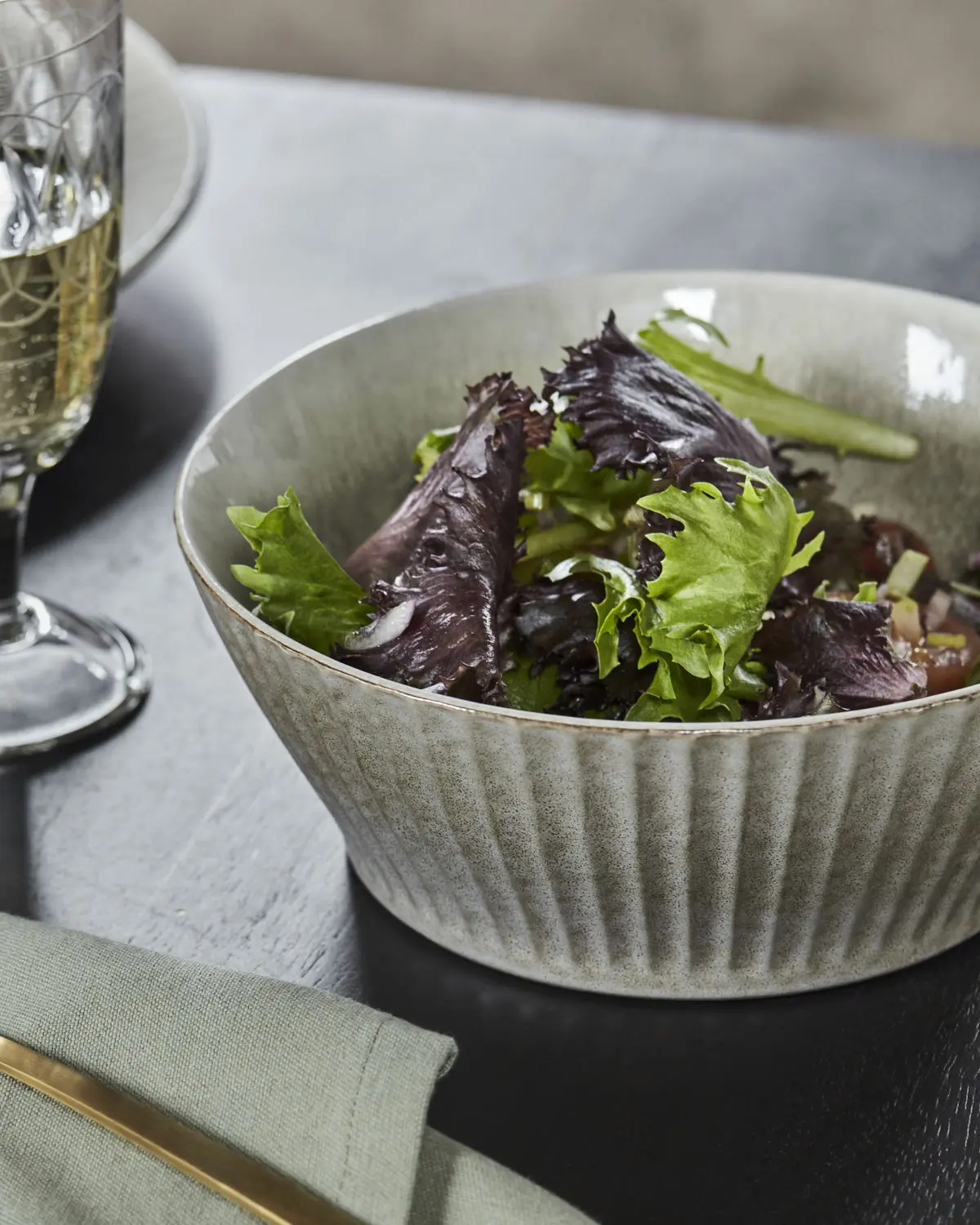 Server salater og andre retter med stil med denne bollen fra House Doctor. Det rilleformede designet kombineres med et matt ytre og en blank innside for å gi borddekkingen et fint, elegant preg. Bruk bollen til salater, snacks eller annet. Størrelsen gjør den ideell for mange formål og anledninger – fra en uformell middag til spontane sammenkomster hvor detaljene skal i fokus.