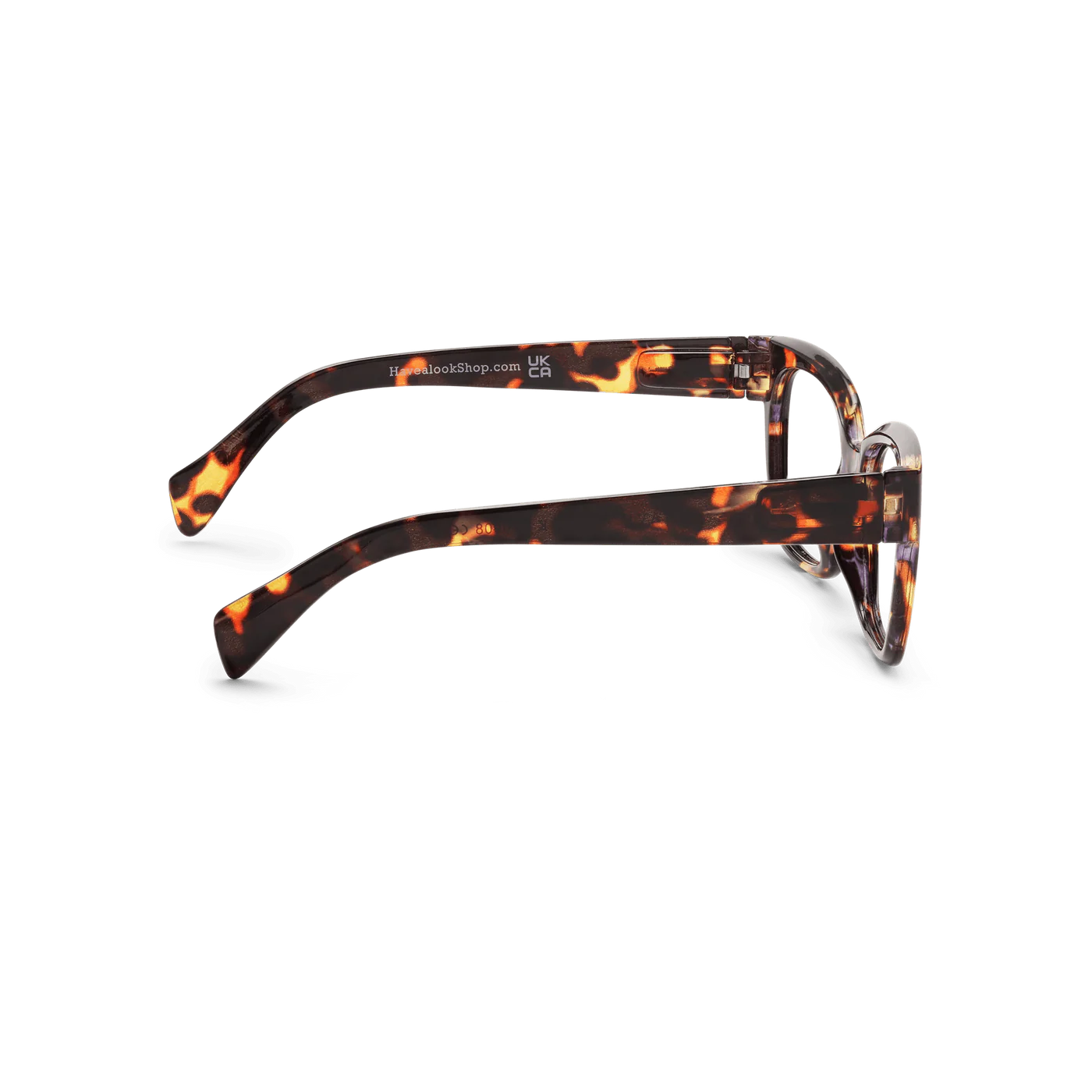 Store, firkantede lesebriller med brun skilpaddemønstret innfatning. Mood er imponerende store og firkantede, men samtidig overraskende lette og komfortable å bære. Den markante innfatningen har flatterende, lett oppadgående hjørner i et design som rammer inn ansiktet vakkert og tilfører karakter. Spesielt godt egnet for runde, ovale og hjerteformede ansiktsformer.