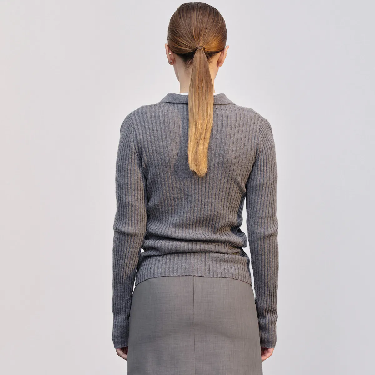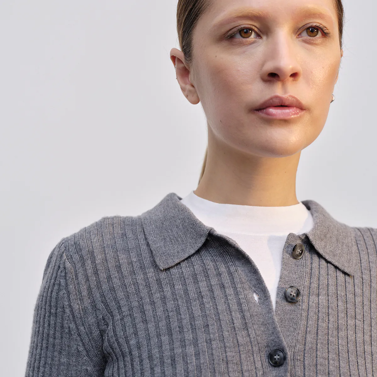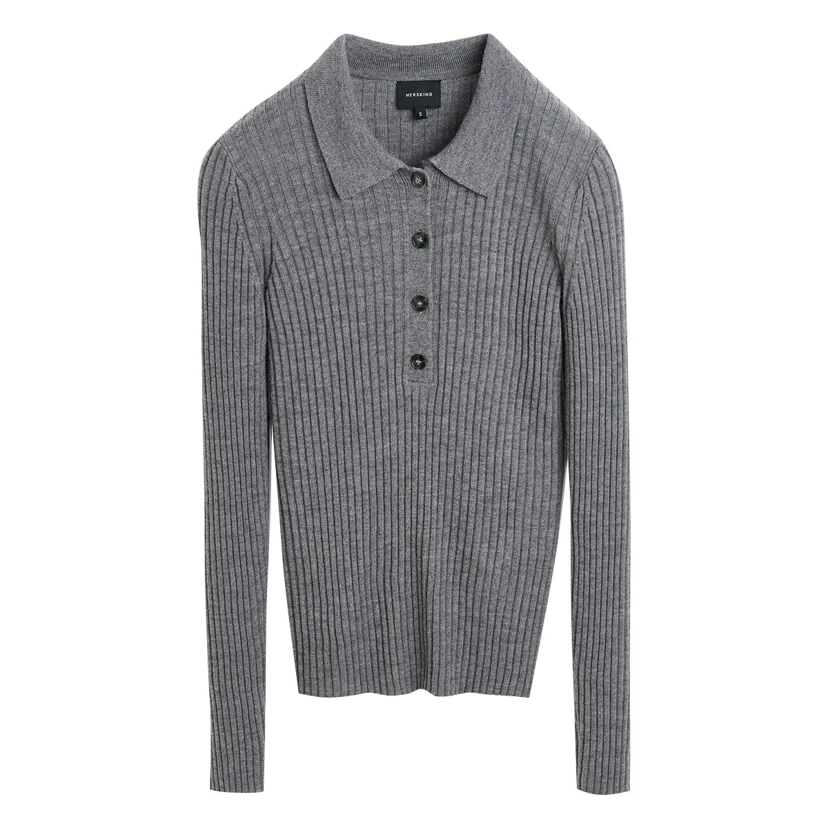 Tyn og god ribbestrikket genser fra Herskind laget av 100% myk merino ull, som føles behagelig mot huden og holder deg varm. Genseren har et klassisk design med krage og stolpe med fire knapper. Den tynne ullen gjør at genseren er perfekt å bruke alene eller under en andre plagg.
