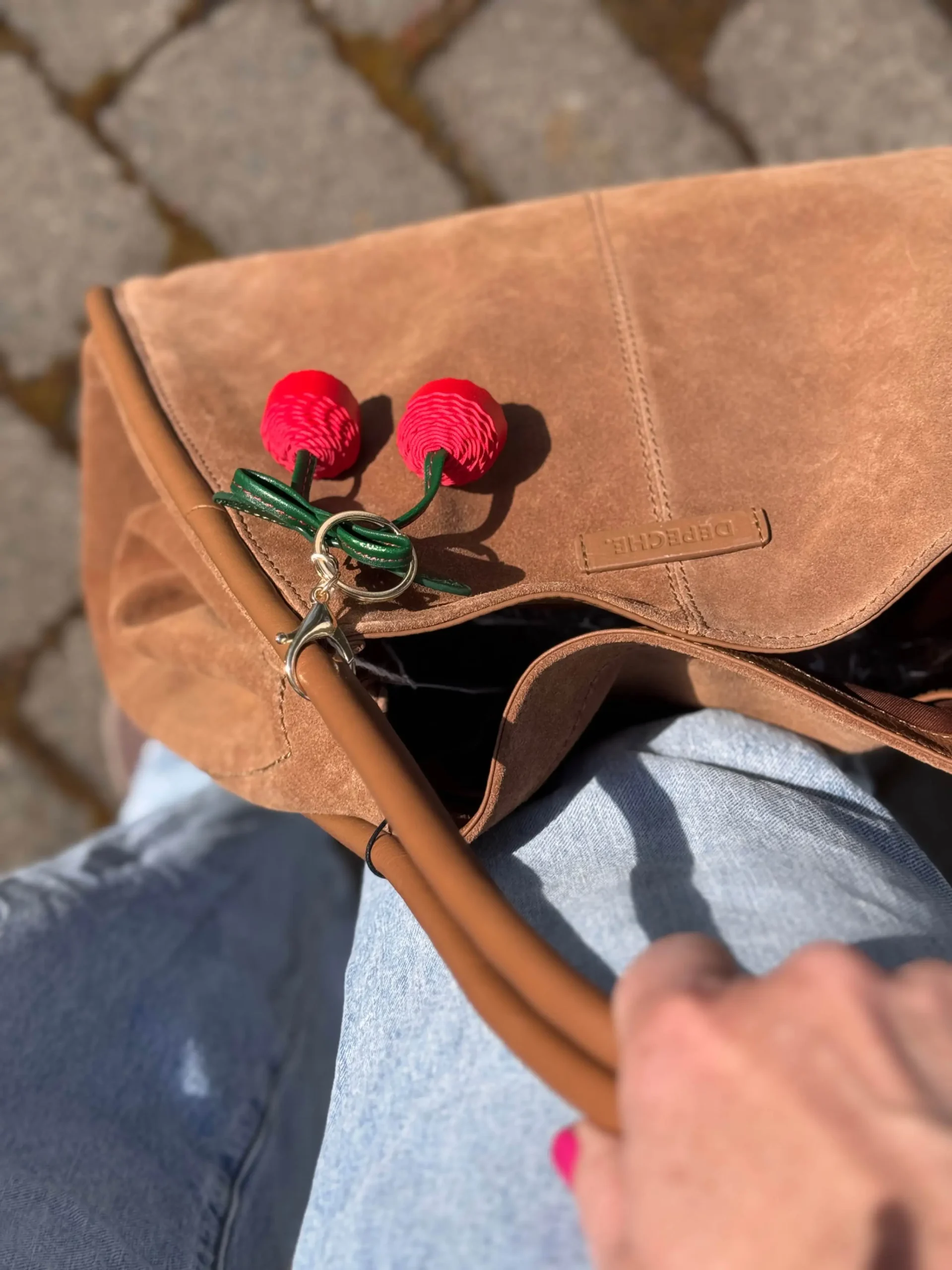 Kirsebærpynt fra Sticky Bestie passer perfekt for å gi vesken eller sekken din et personlig og lekent preg. Den er laget av holdbart materiale og har fine detaljer. Figuren er enkel å feste og passer til de fleste vesker. Et ideelt tilbehør for deg som elsker å pynte opp vesken din.