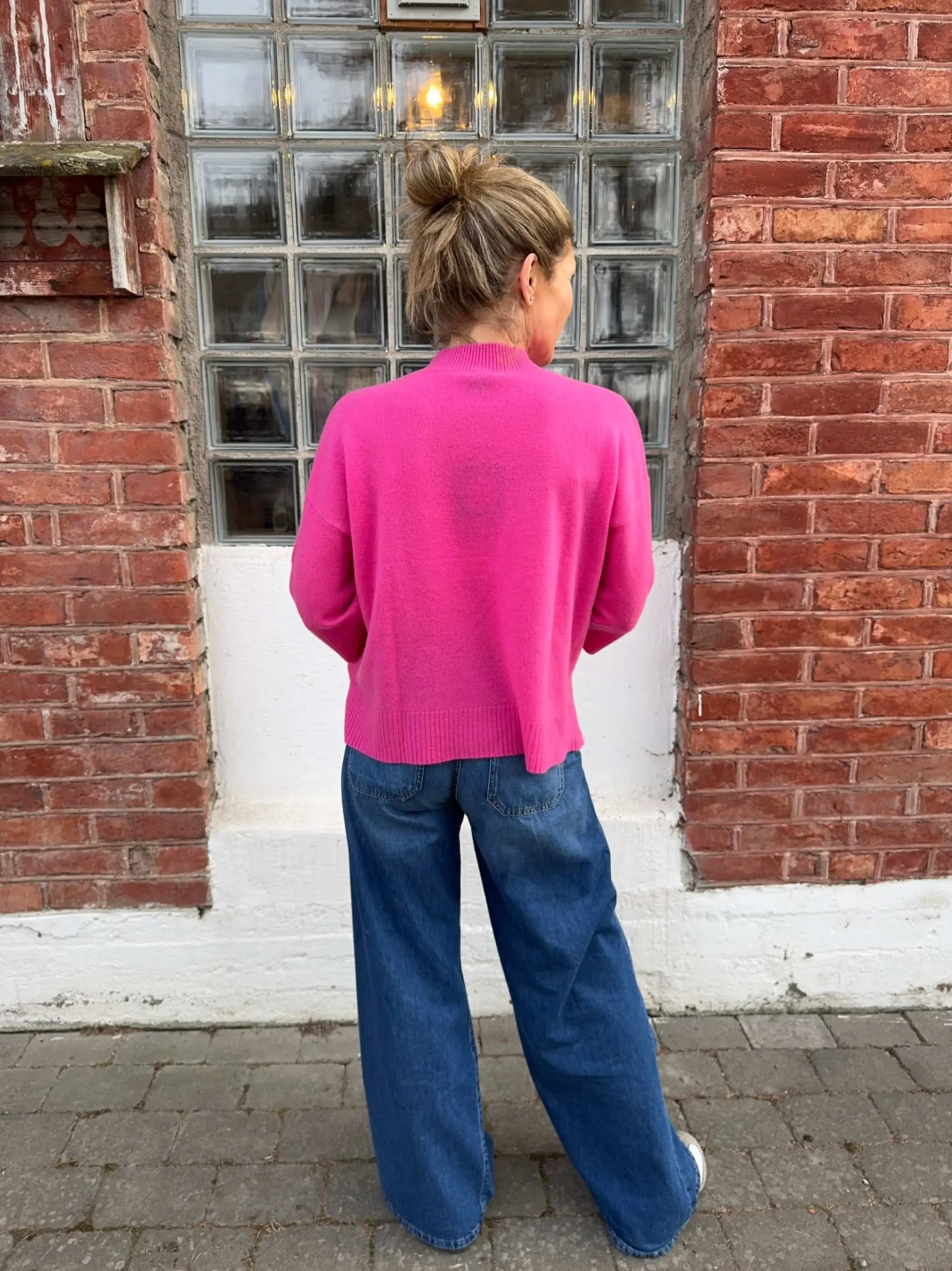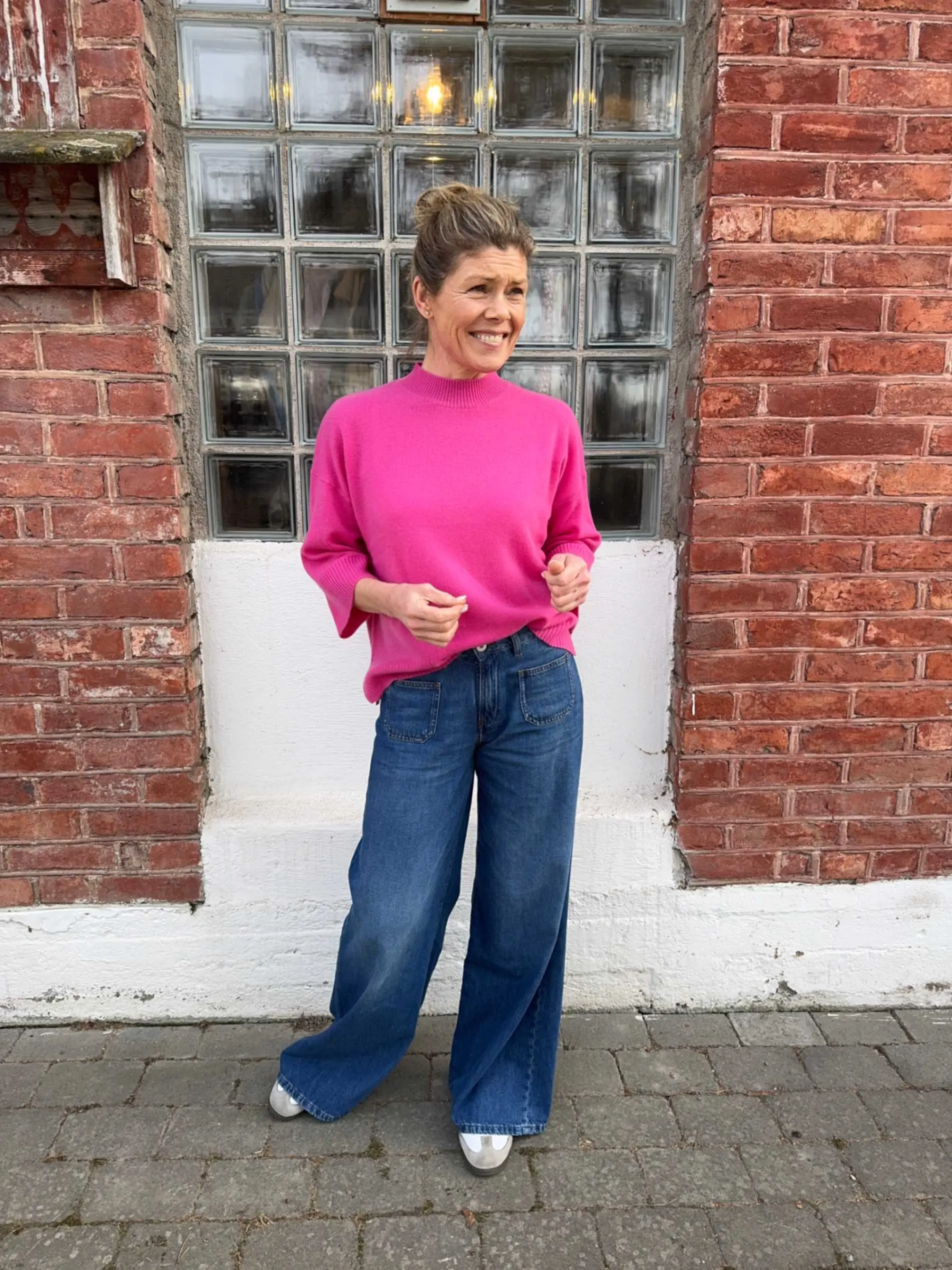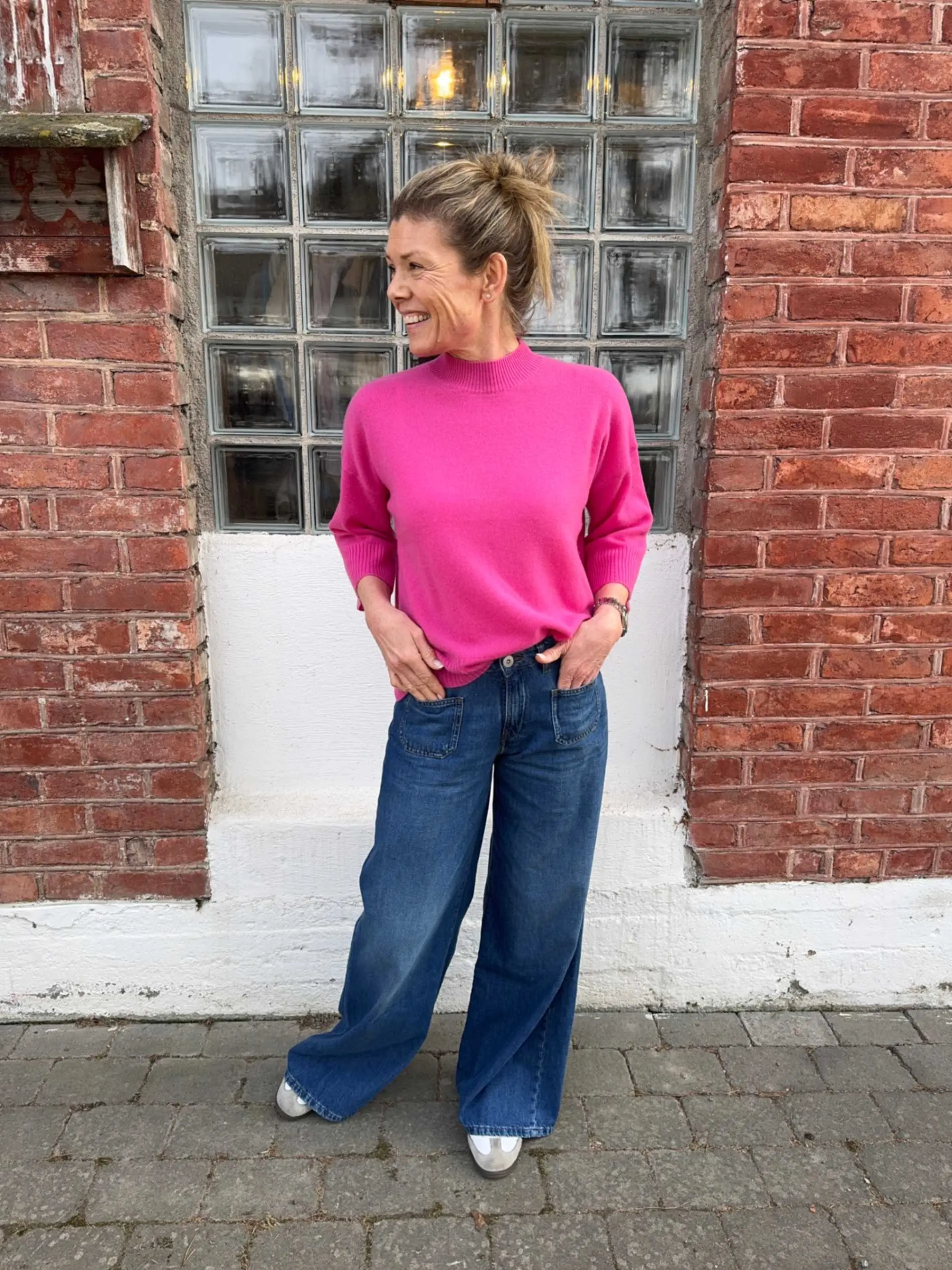 Denne lekre genseren i myk kashmirkvalitet har 3/4-lange ermer og en romslig passform. Kommer i en nydelig rosa farge som frisker opp et hvert antrekk. Den er perfekt til både bukser og skjørt, og gir en elegant og avslappet look.