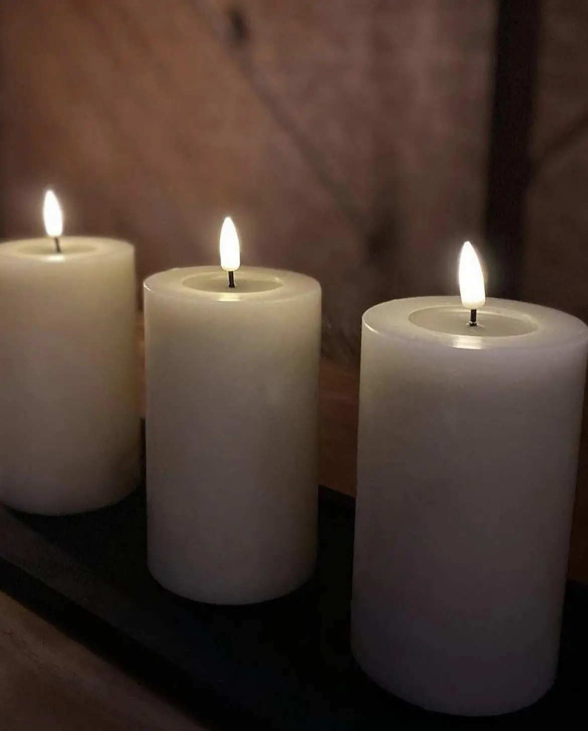 Led lys kubbelys. Ser helt naturlig ut med vokset overflate og blafrende flamme. Kjøp med fjernkontroll, så du kan tenne, time og slukke lysene med en og samme kontroll. Trygt, sikkert og absolutt helt sotfritt!