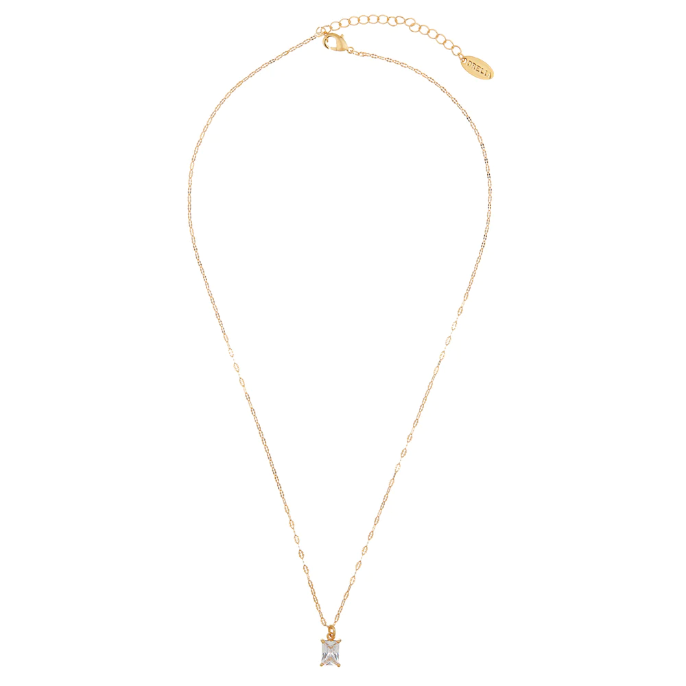 Vakkert halskjede fra Orelia. Dette halskjedet har en klassisk, delikat gullkjede som bærer en iøynefallende baguette-formet klar krystall.