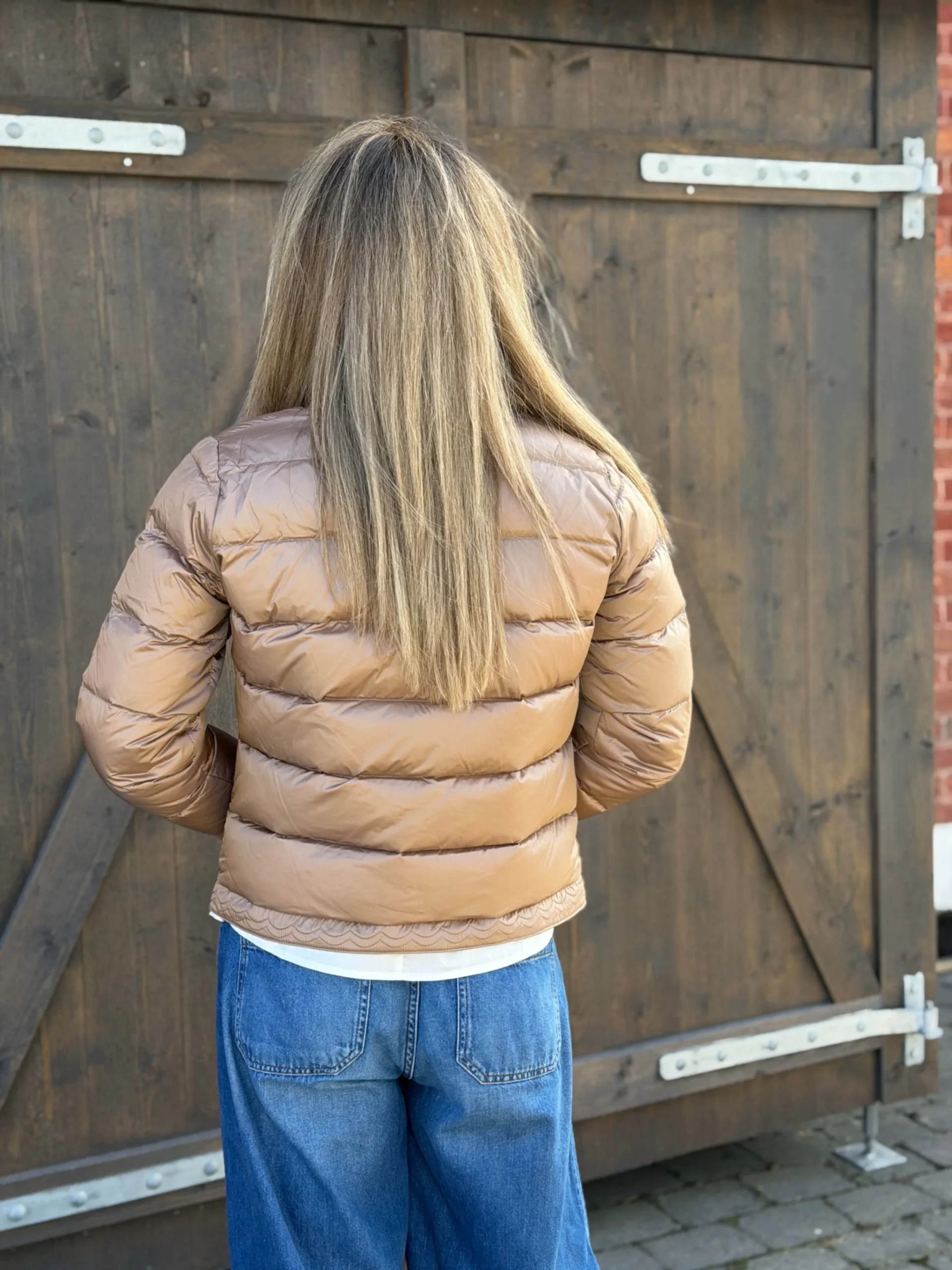 Lett og elegant sommerdunjakke som passer perfekt til kjølige dager og sene kvelder. Jakken har en feminin rund hals, dekorative knapper og praktiske frontlommer. De delikate detaljene langs kantene gir et unikt og gjennomført uttrykk.