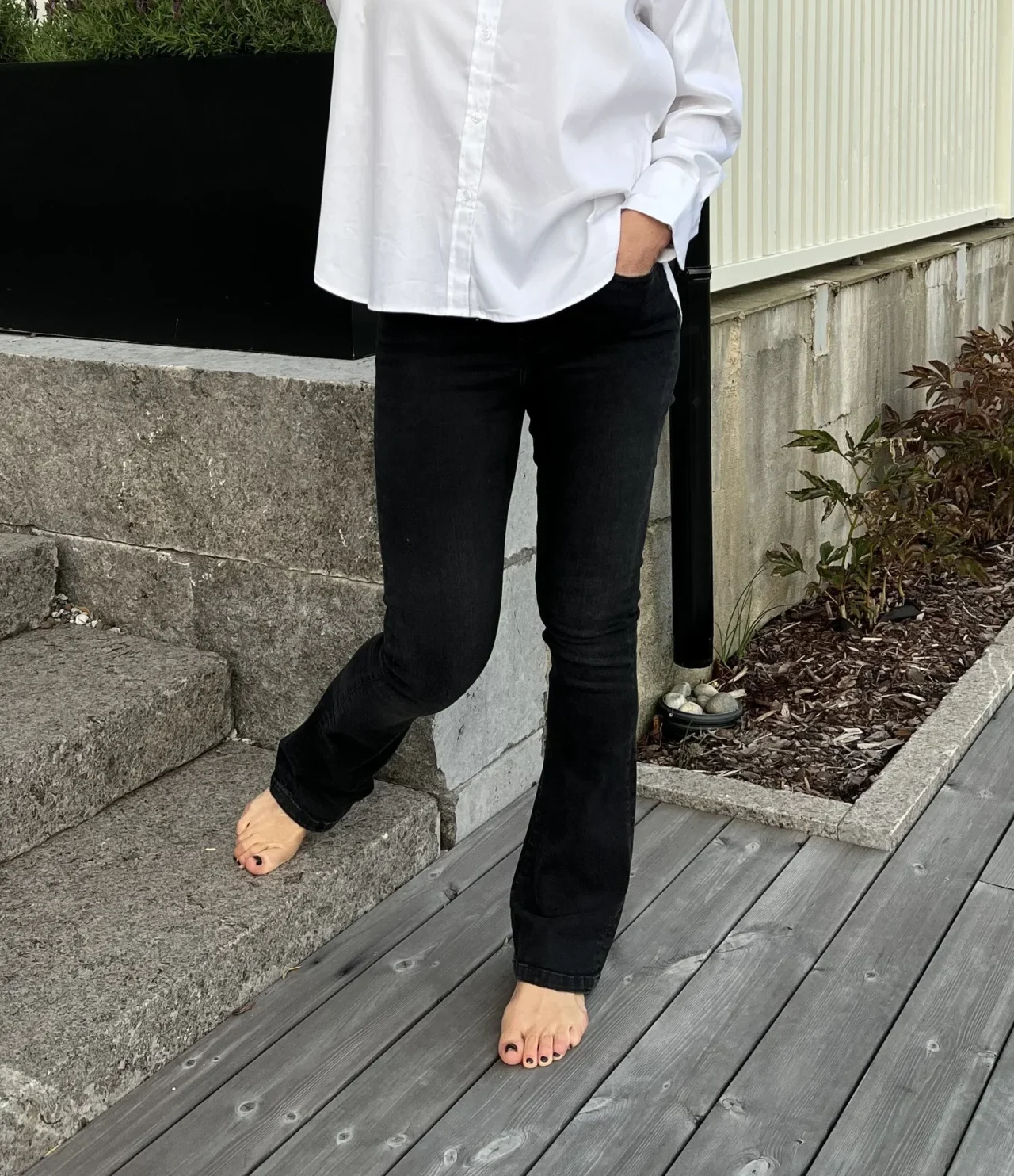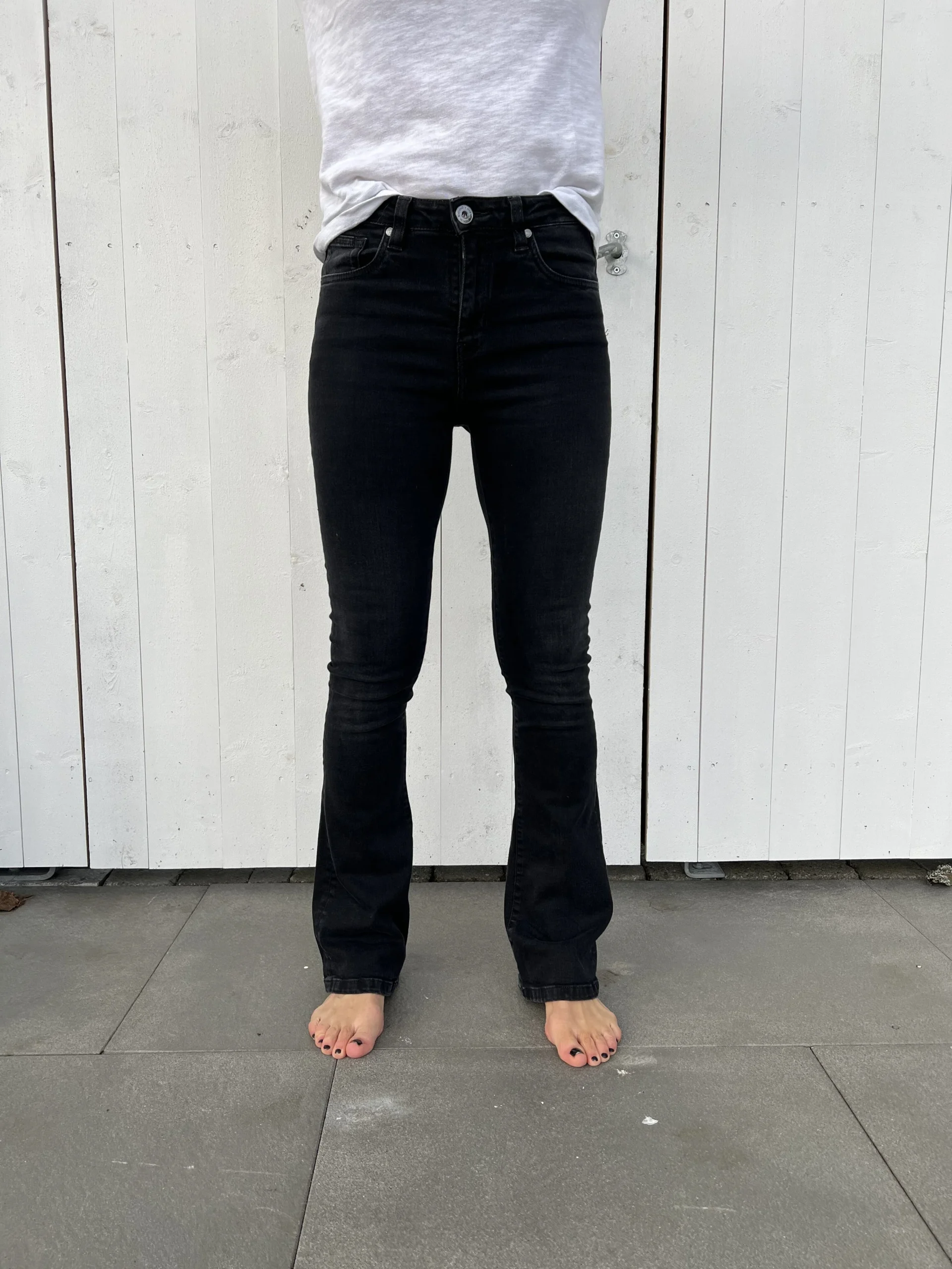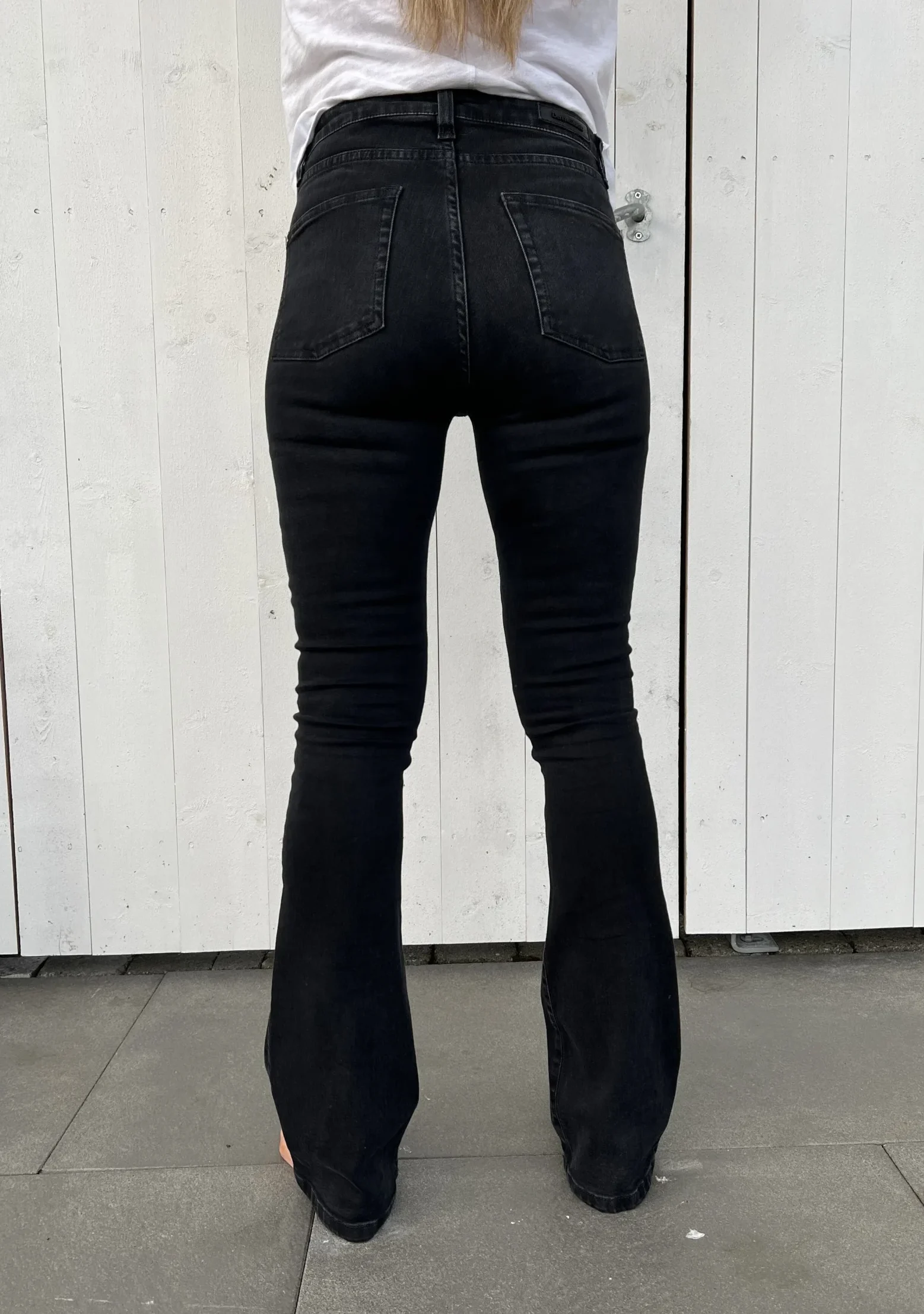 Brook Black Recall fra Denim Studio er et par vasket svart denim-jeans i klassisk femlomme-modell med ettersittende passform over setet og rundt lårene og sleng.