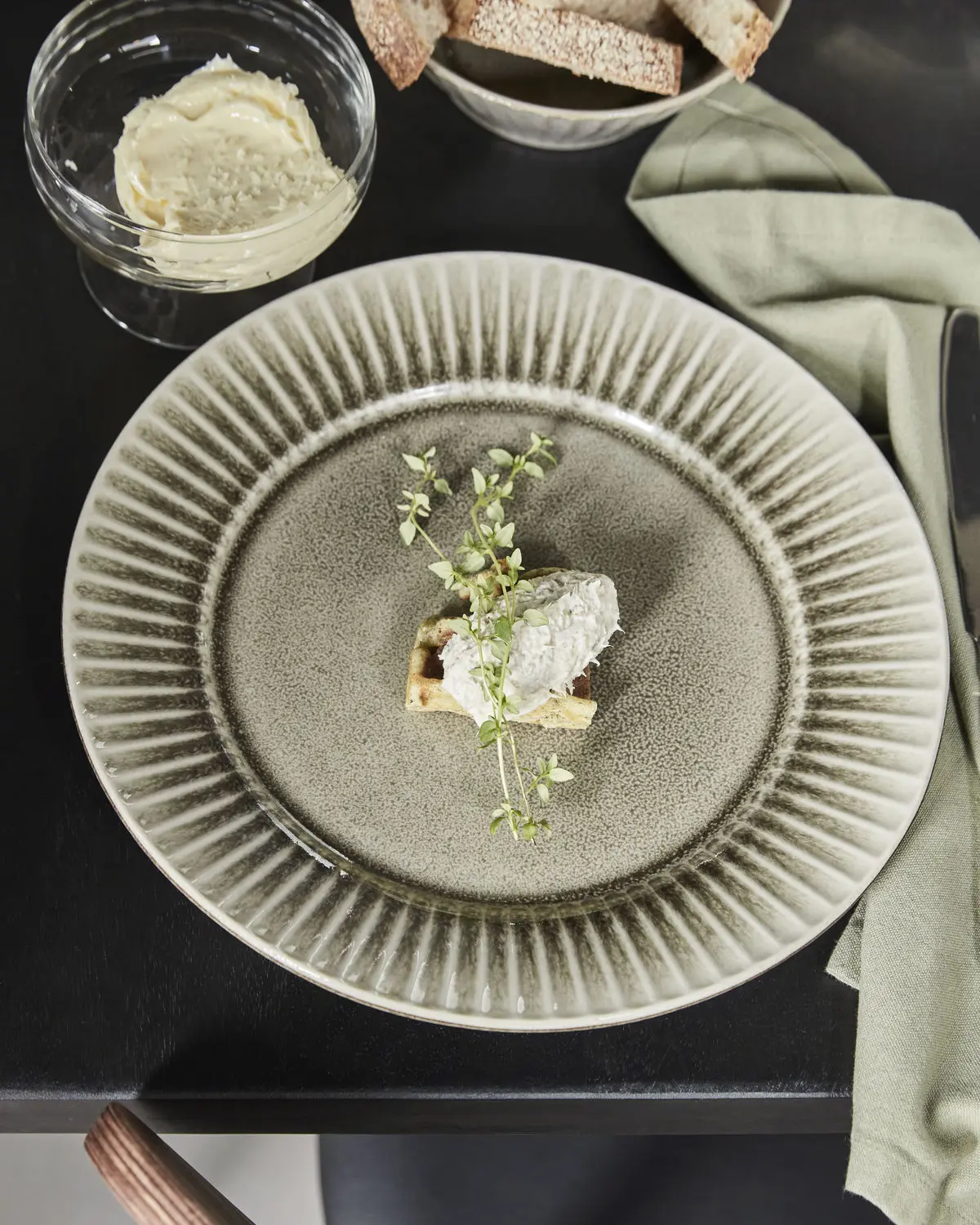 Dekk bordet på en diskré, men elegant måte med denne middagstallerkenen fra House Doctor. Den rilleformede designen kommer sammen med en matt ytterside og en blank innerside for å gi borddekkingen passe mengde stil og eleganse. Det som ligner et enkelt, hverdagslig design skiller seg ut når du ser nærmere på det. Fullfør borddekkingen med servise i samme stil, eller gjør det unikt ved å blande forskjellige farger og materialer.