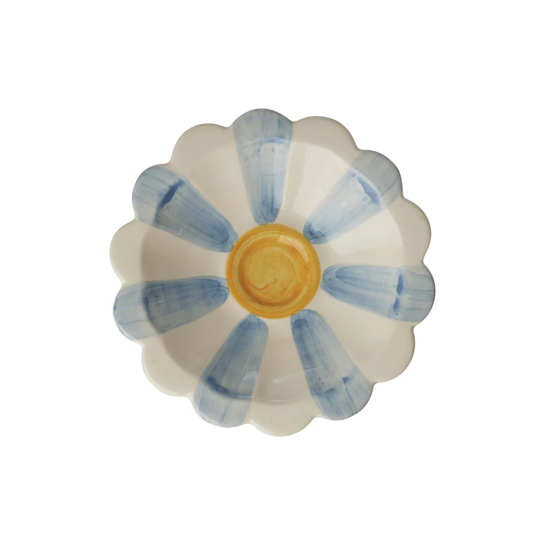 Legg til et unikt preg i hjemmet med denne nydelige, lille skålen! Blomsterdesign og blå striper gir et vakkert inntrykk. Håndmalt, noe som gjør hver skål helt unik. En perfekt gave eller et flott tillegg til din egen samling!