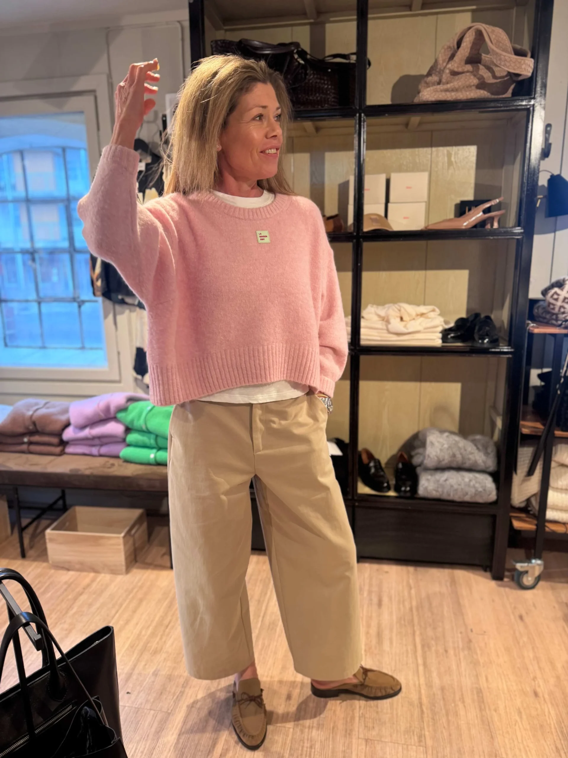 American Vintage-genseren er myk og lett, laget i en deilig alpakka-ullblanding. Den har en avslappet passform og et enkelt, firkantet “LA MAISON AMV”-merke foran. En komfortabel genser du kan bruke året rundt.