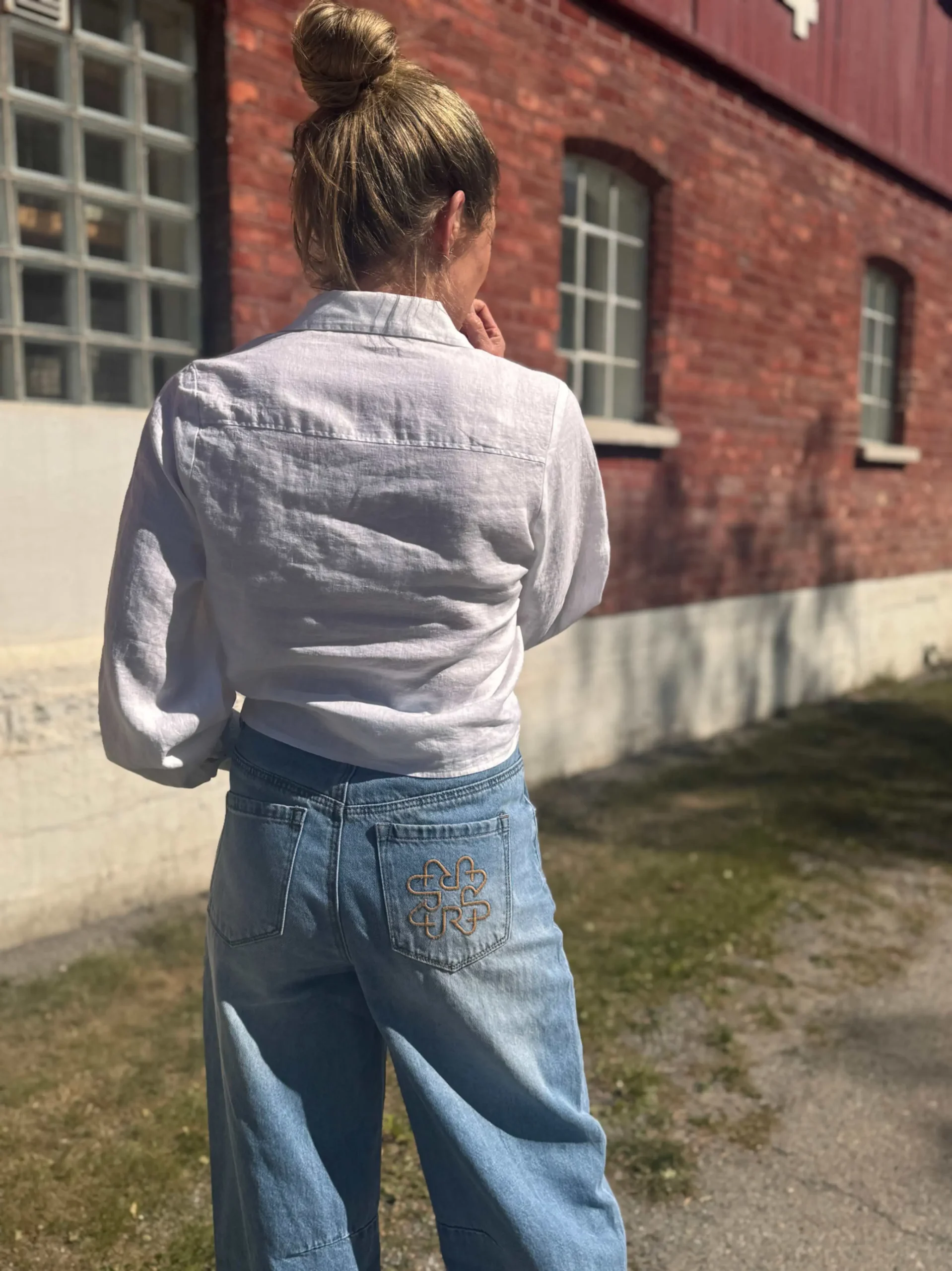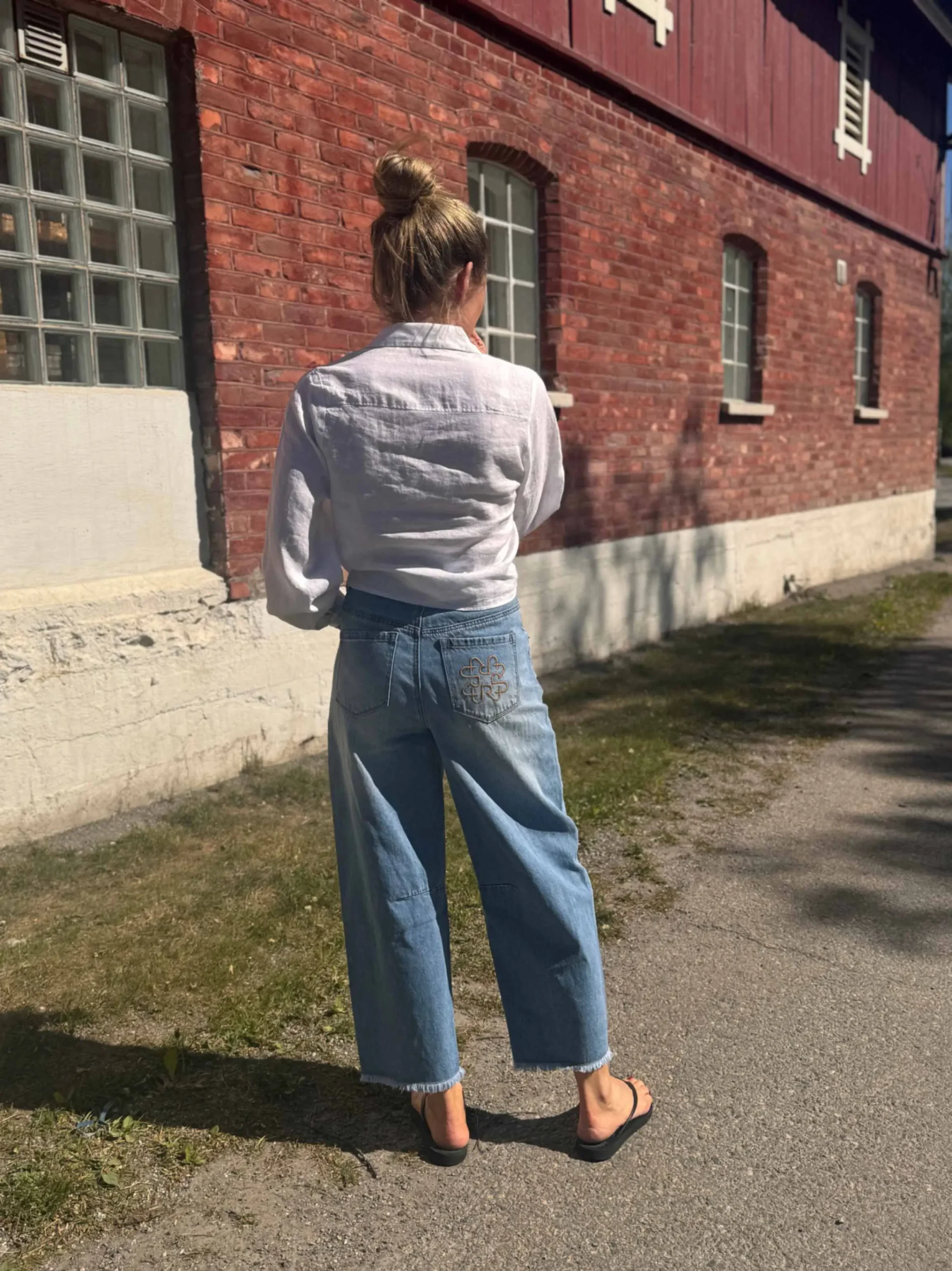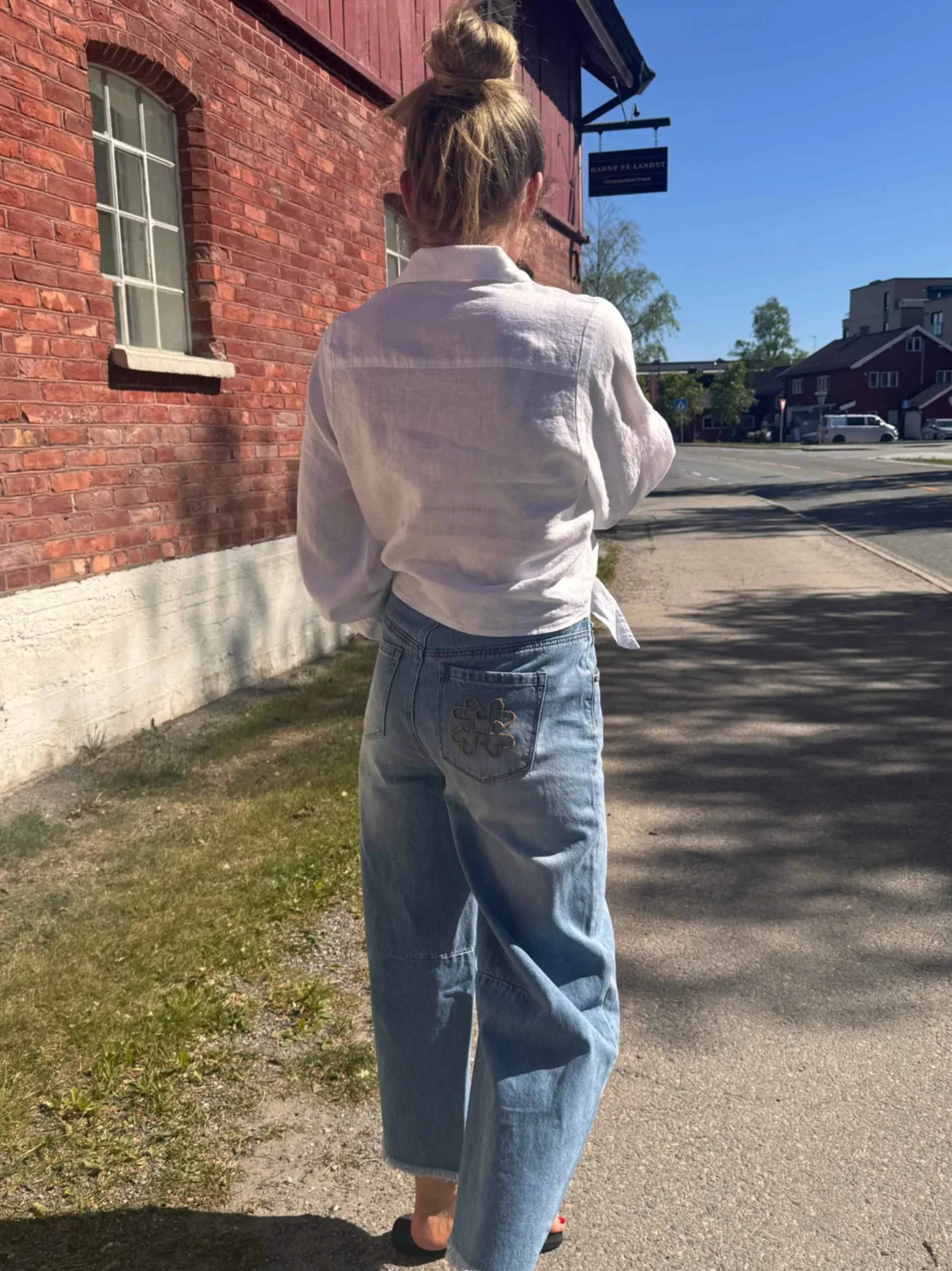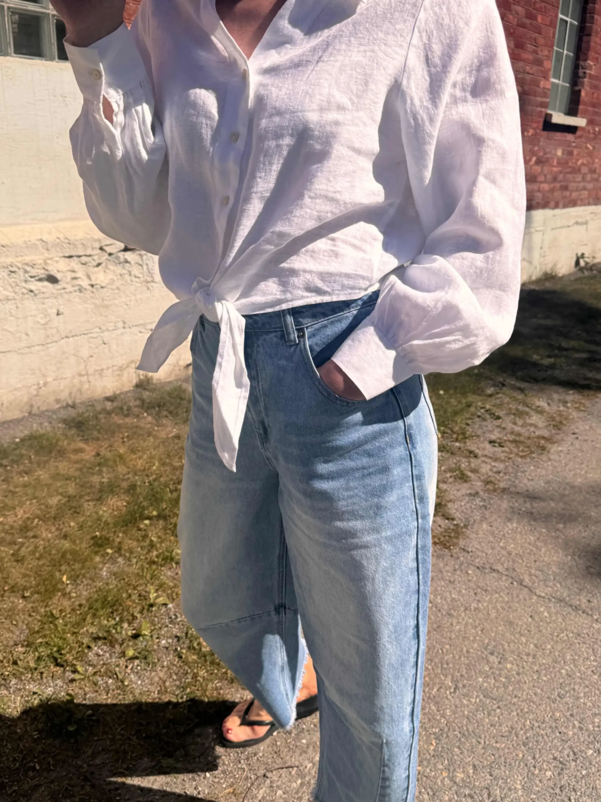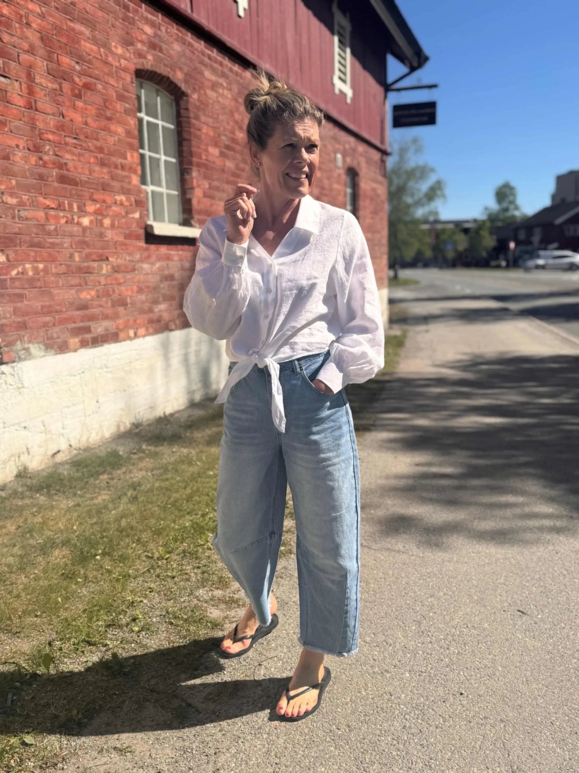 Ella skjorte i hvit lin fra Monte Napoleone er et luftig og behagelig sommerplagg som kombinerer stil med komfort. Skjorten har en kort fasong med knyting foran, som gir et feminint og avslappet uttrykk. Den er laget i 100 % lin, noe som gjør den perfekt for varme dager der du ønsker et pustende og lett materiale. Med sitt tidløse design passer den like godt til en rolig stranddag som til et mer oppkledd sommerantrekk.