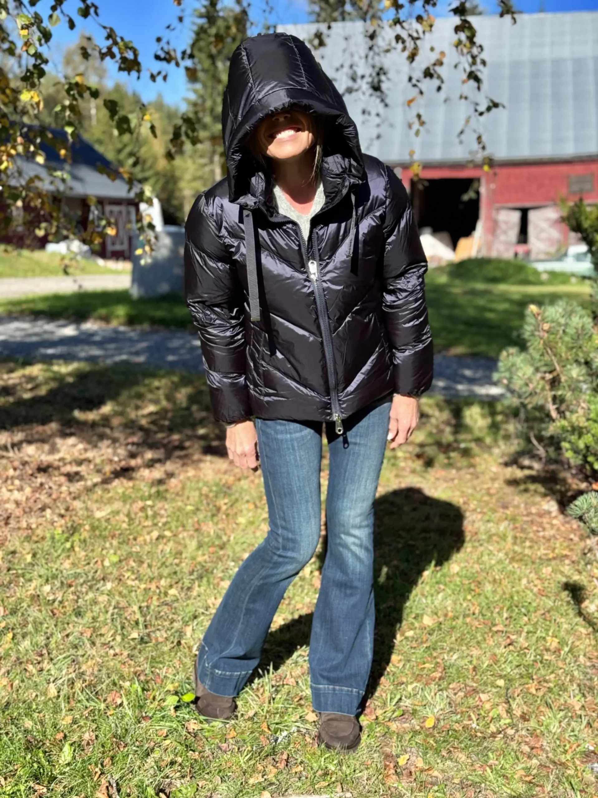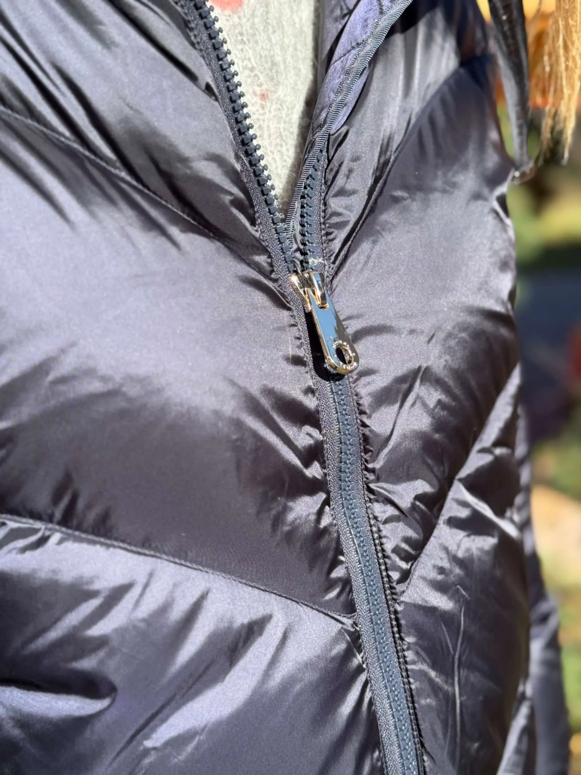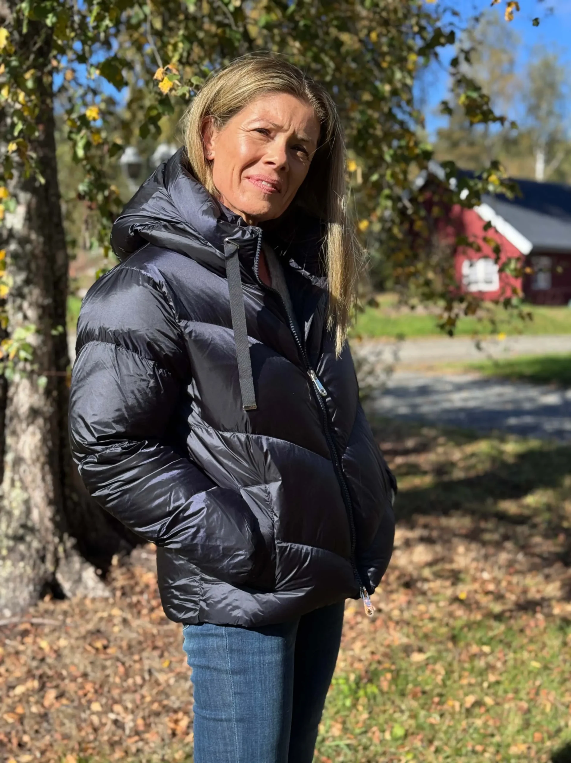 Emily er en god og varm jakke med normal passform og V-formede dunkanaler som gir et moderne uttrykk. De gullfargede detaljene setter en fin finish, uten å ta over. En praktisk og tidløs jakke som holder deg varm og stilig gjennom sesongen.