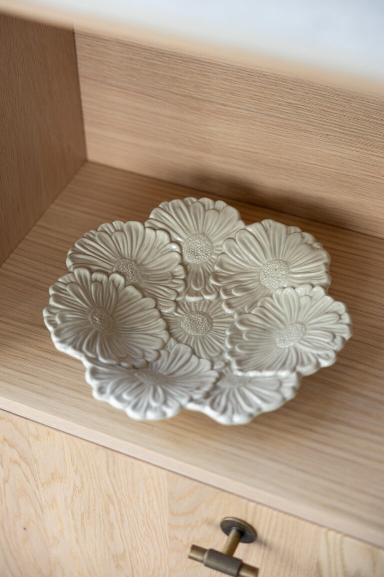 Keramisk fat utformet som blomster. Et dekorativt og funksjonelt element som egner seg perfekt til frukt, snacks eller som et iøynefallende blikkfang i rommet.