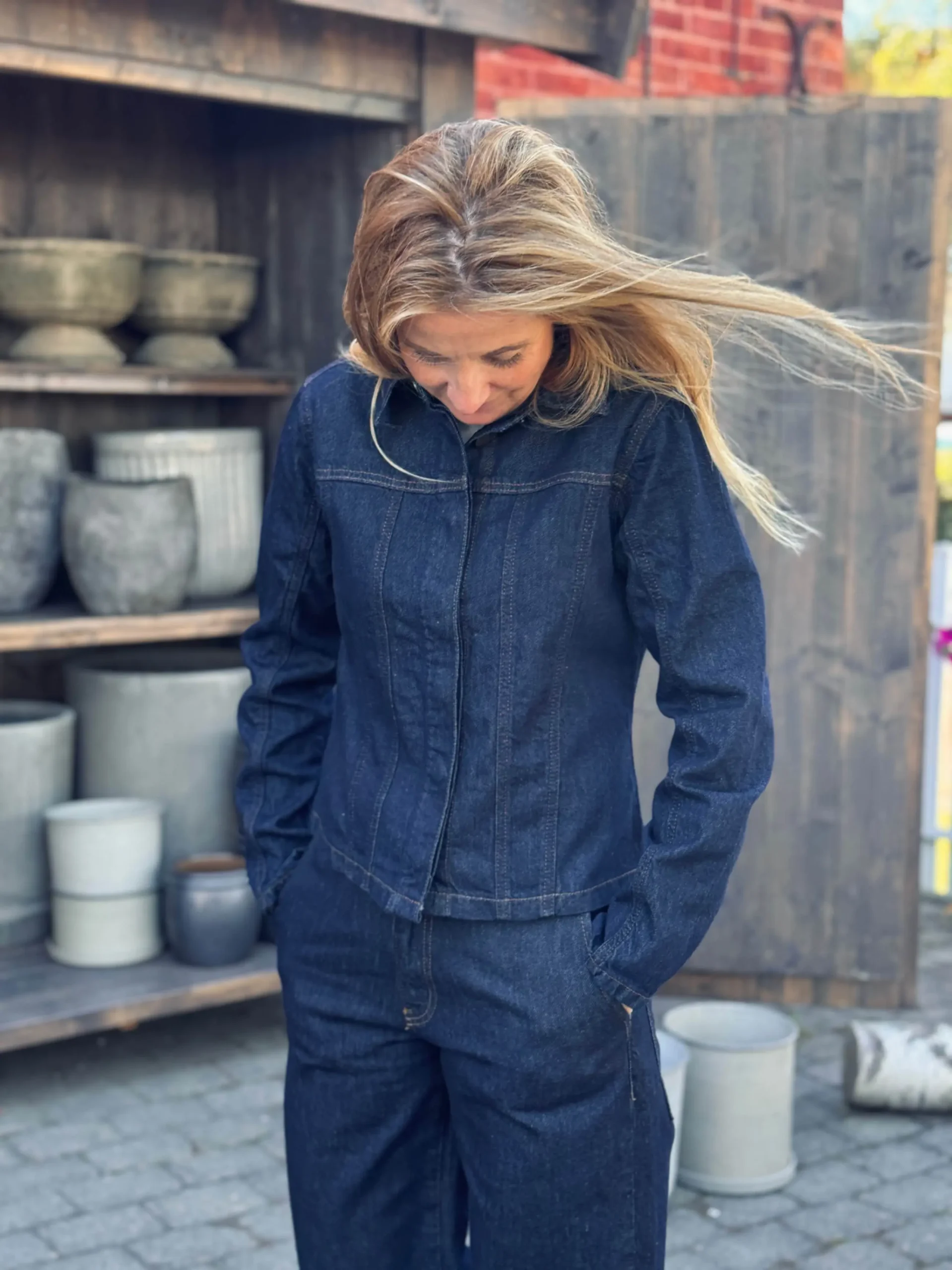 Stilig og figurnær skjorte i mørk blå denim fra My Essential Warderobe. Den korte passformen gir et moderne uttrykk, og den kan enkelt styles både til hverdags og til mer pyntede anledninger. Bruk den alene eller sammen med den matchende buksen for et gjennomført og trendy denim-sett.