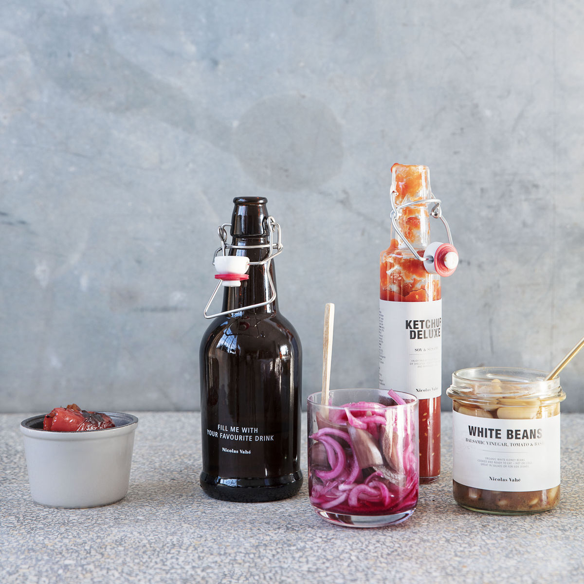 Smart og gjenbrukbar glassflaske i en vakker brun farge og retro design fra Nicolas Vahé. Flasken kommer med en praktisk patentkork som er spesielt utviklet for produkter med lang levetid. Du kan derfor helle på din favoritt drikke og la den stå i kjøleskapet til neste dag.
