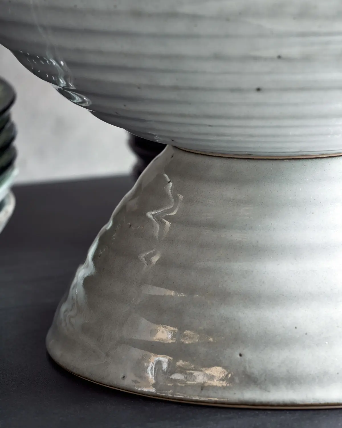 Et elegant tilskudd til kjøkkenbenken eller spisebordet der det fungerer som et midtpunkt. Like fint til frukten som til snacksen. Steintøysdesignet er komplettert med en lysegrå glasur som gir et uformelt preg og i en stil som passer rett inn i enhver interiørstil. På grunn av glasurens og overflatens natur kan det oppstå riper over tid.