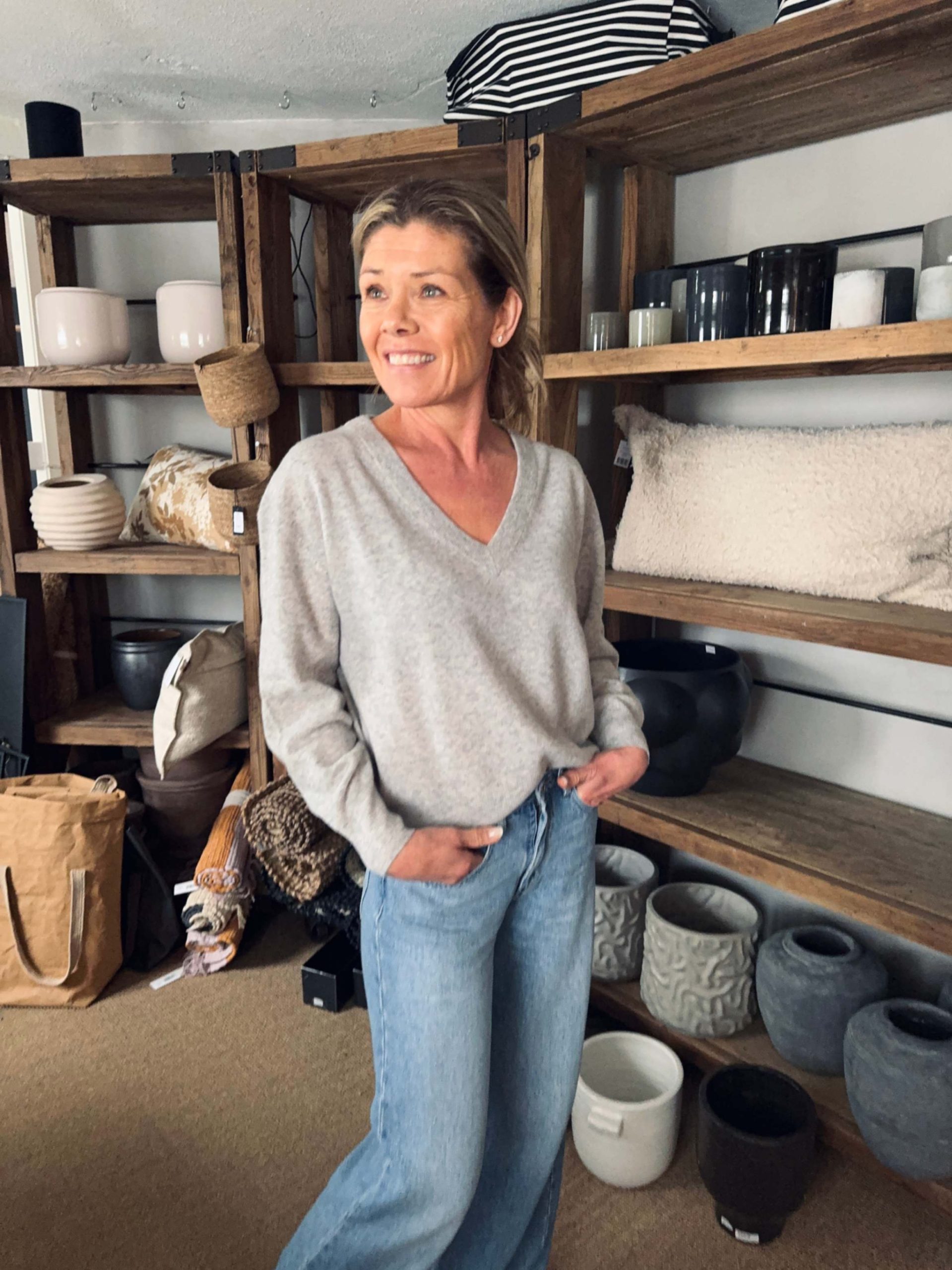 Behagelig og deilig genser med klassisk V-hals-design. Perfekt til både hverdagsbruk og mer avslappede anledninger. Laget i et mykt og komfortabelt materiale som holder deg varm og stilig samtidig. Flott å kombinere med jeans eller skjørt for et tidløst antrekk.