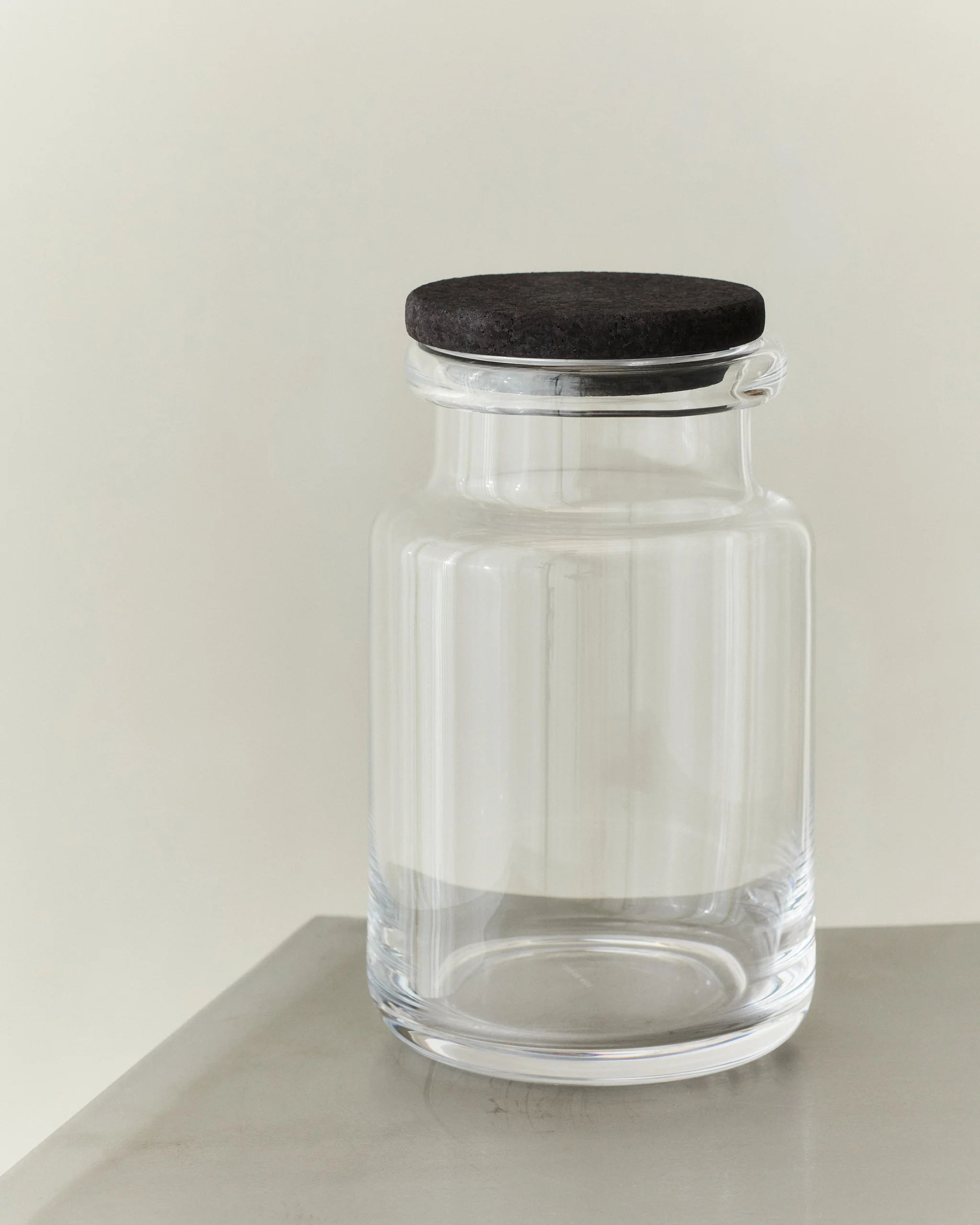 Nydelig glassbeholderen i ypperste kvalitet fra Louise Roe. Munnblåst glass, avsluttet med et svartfarget korklokk. Korklokket tiltrekker fuktighet, som forlenger holdbarheten på hva enn du skulle ønske å oppbevare; knekkebrø, frø, frokostbalnding, til og med frukt og grønt… Oppbevar tingene dine på kjøkkenet eller bruk den også som vase.