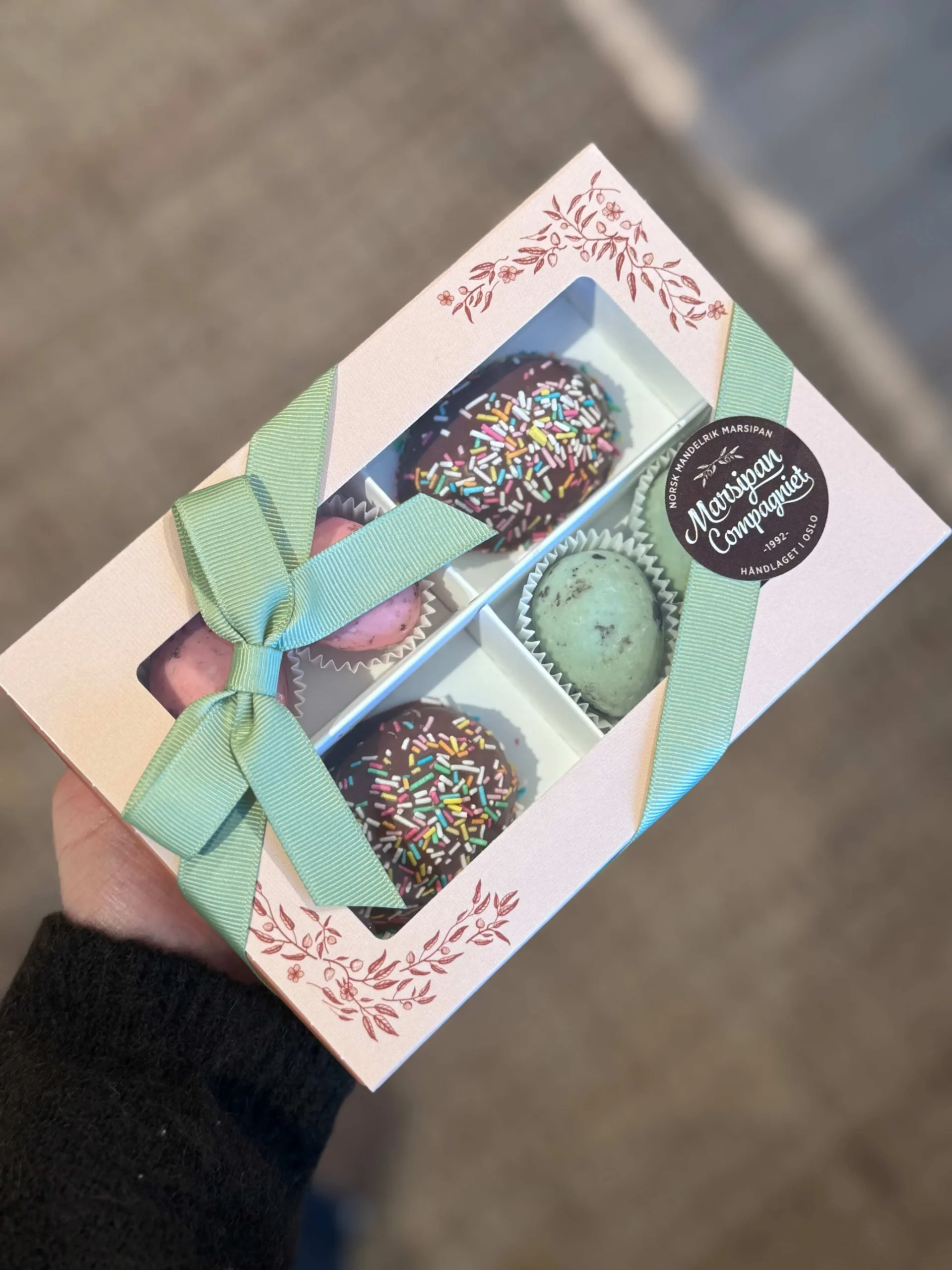 Lekker påskekonfekt fylt med nydelig, myk marsipan – perfekt for å sette en ekstra søt smak på høytiden. En liten luksus som gjør påsken komplett!