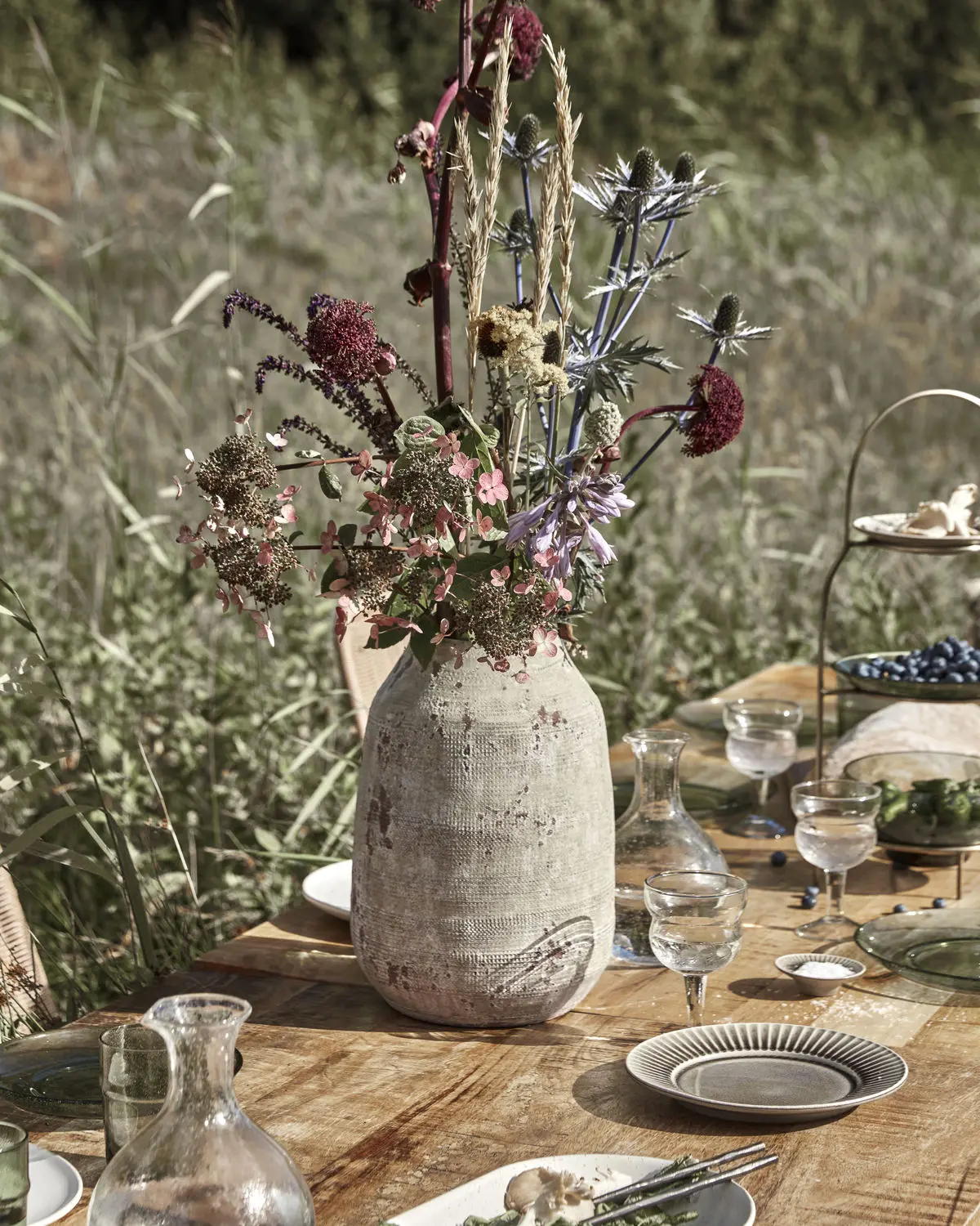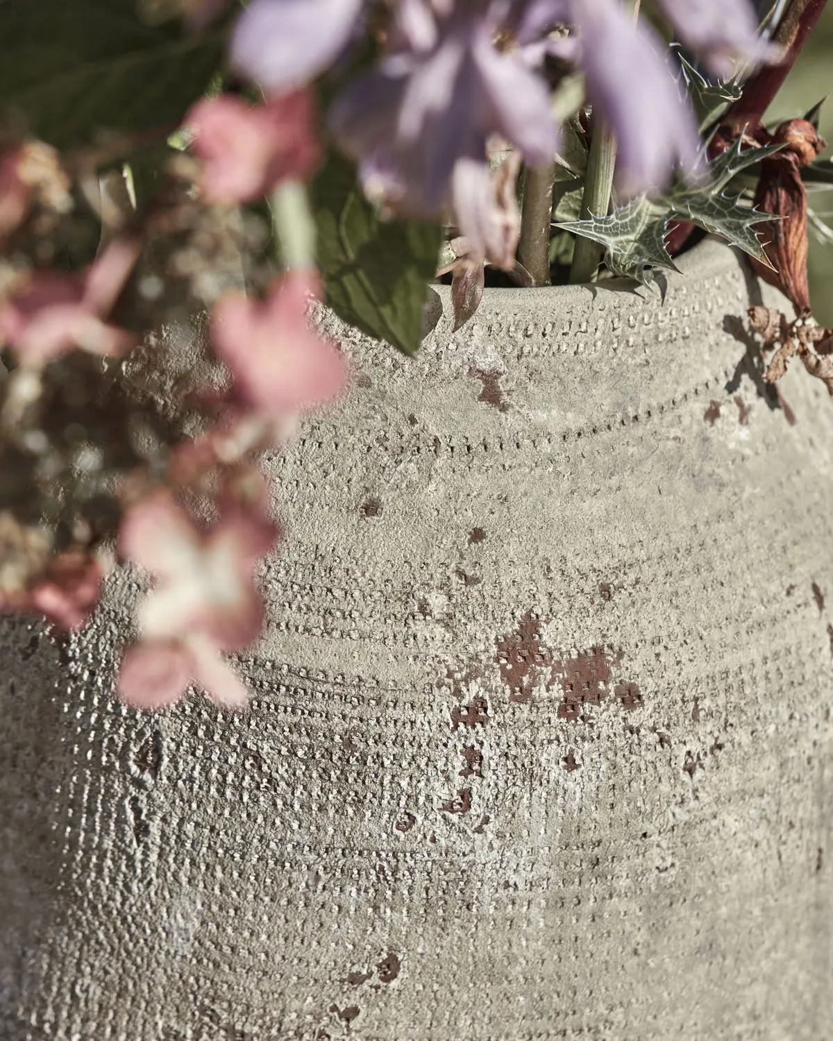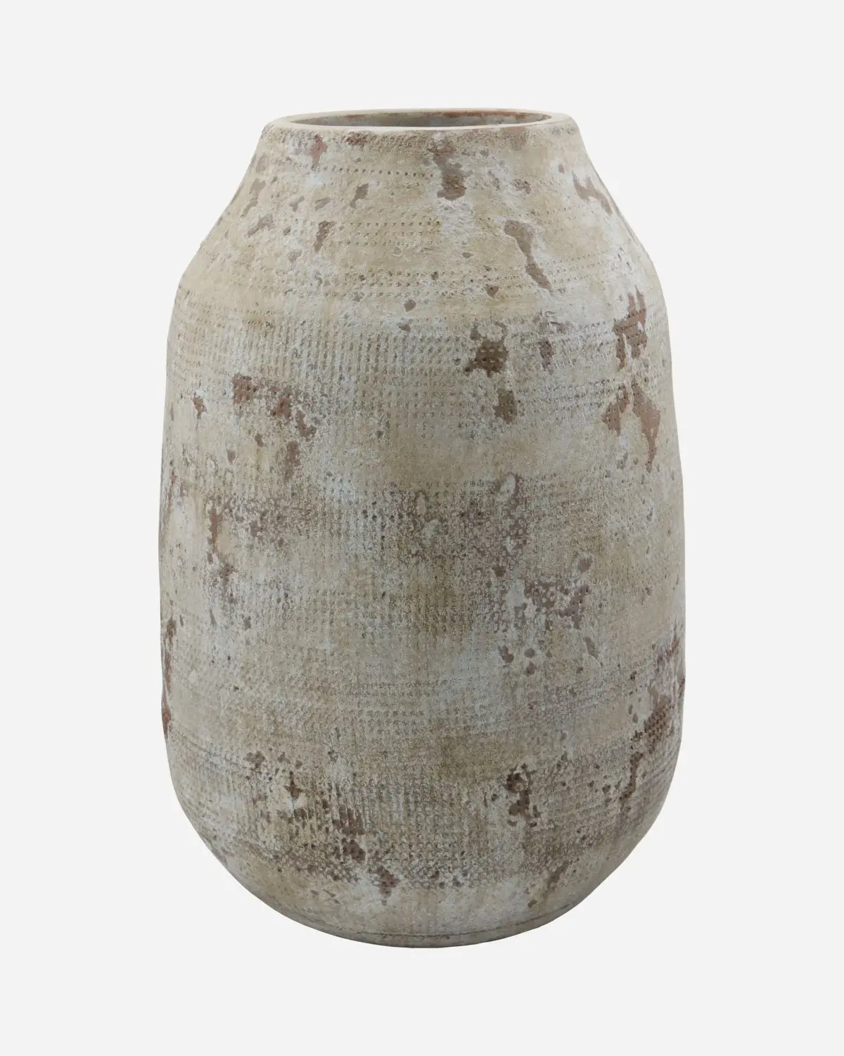 Enkelt, klassisk og likevel med så mange detaljer. Denne vasen fra House Doctor er et tidløst supplement til hjemmeinnredningen. Med en rustikk finish og allsidig farge passer den til enhver blomst eller plante. Plasser den på stuegulvet, på et lite bord eller på middagsbordet. Det skaper en rolig og avslappende atmosfære. Den er håndlaget, har et rustikt utseende og er porøs. Derfor har den et innlegg som beskytter overflaten.