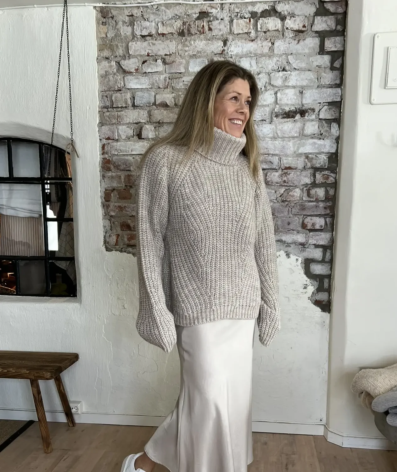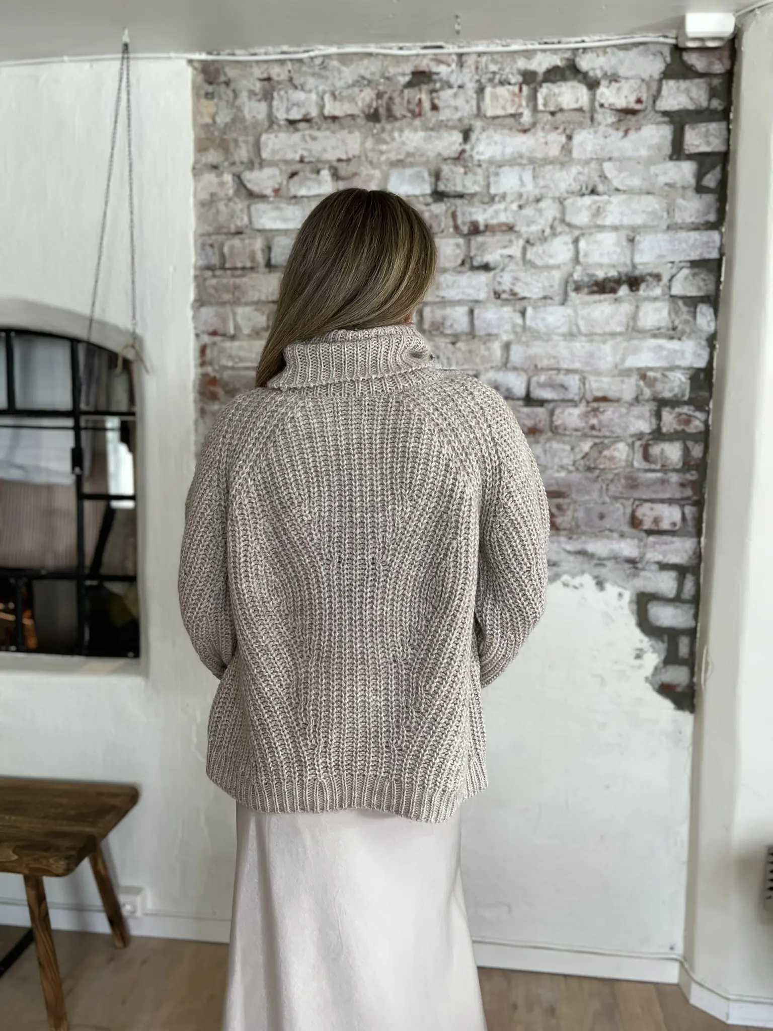 Henny-strikken er en tykk høyhalset genser med en avslappet passform og raglanermer. Saueull- og alpakkablandingen bil garantert holde deg varm på de kalde dagene.