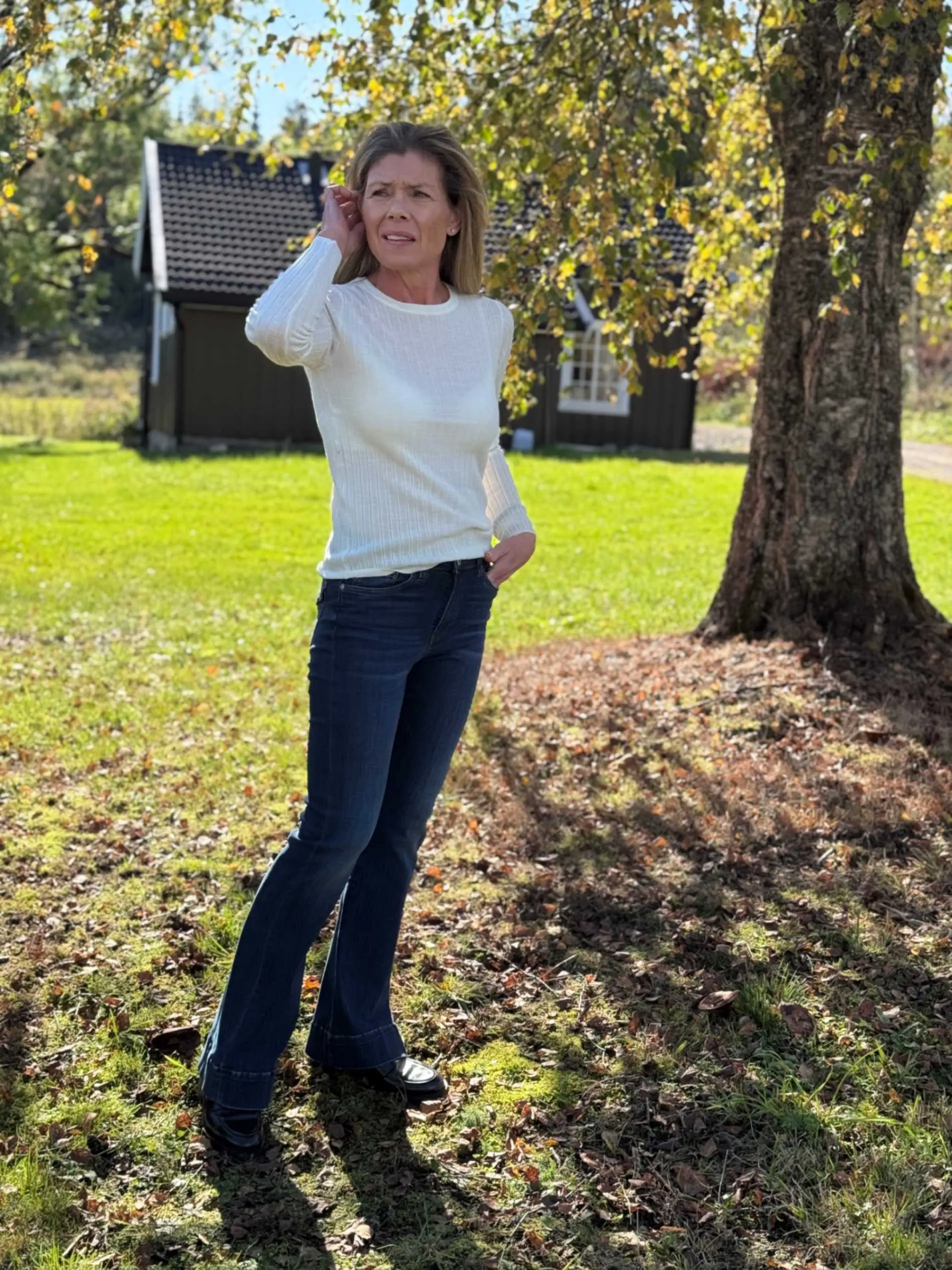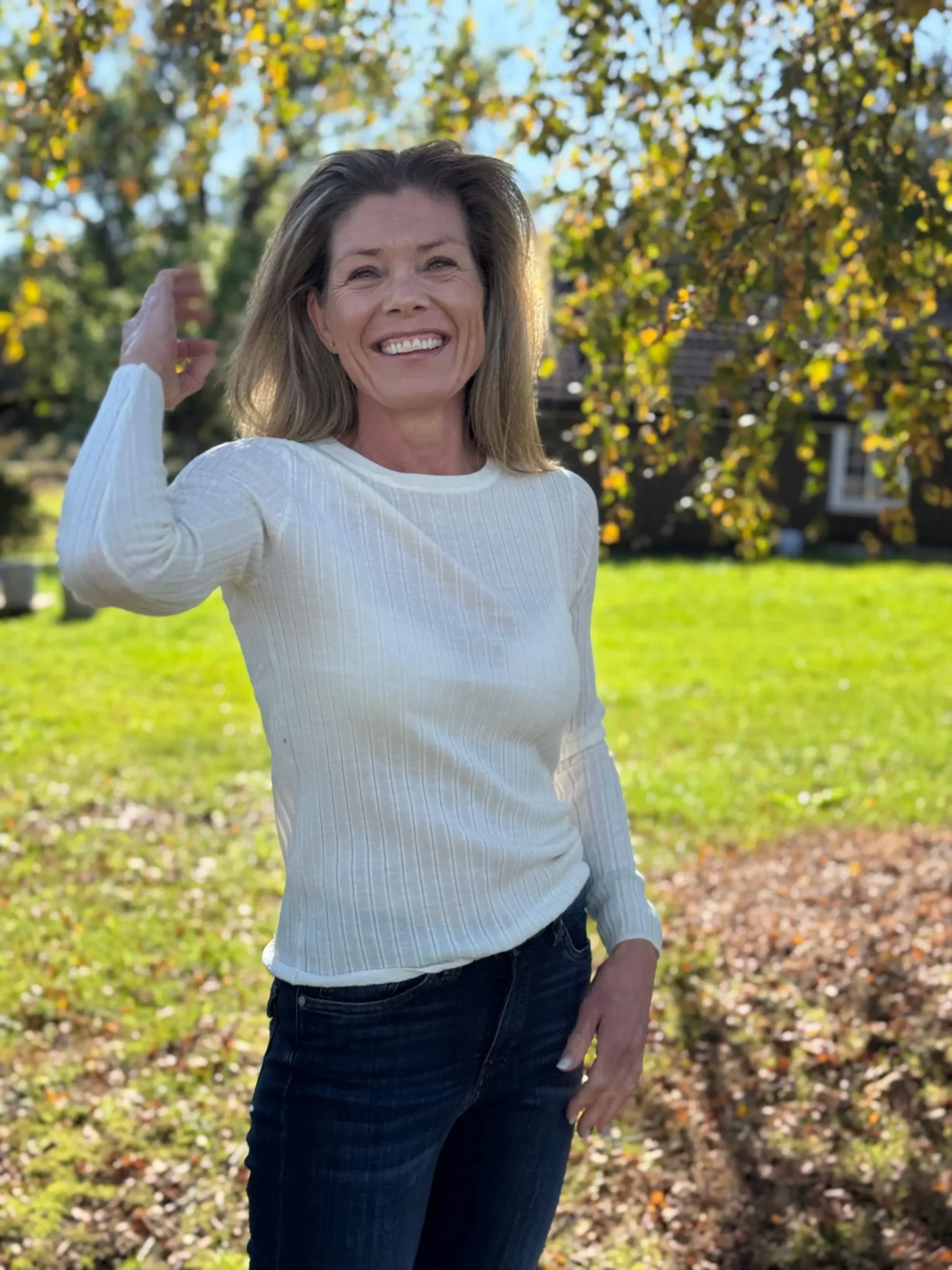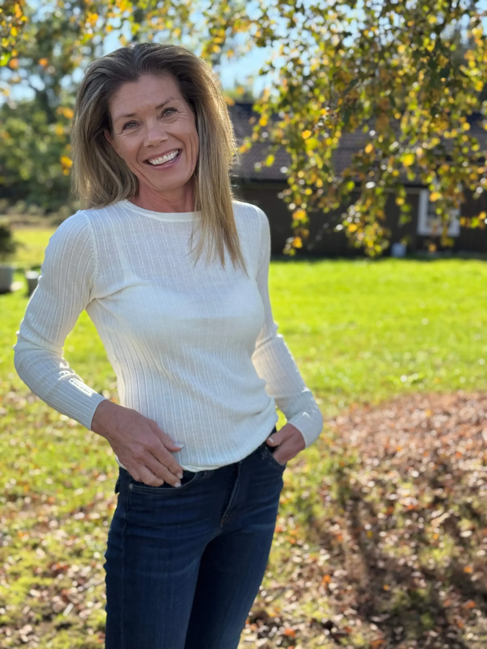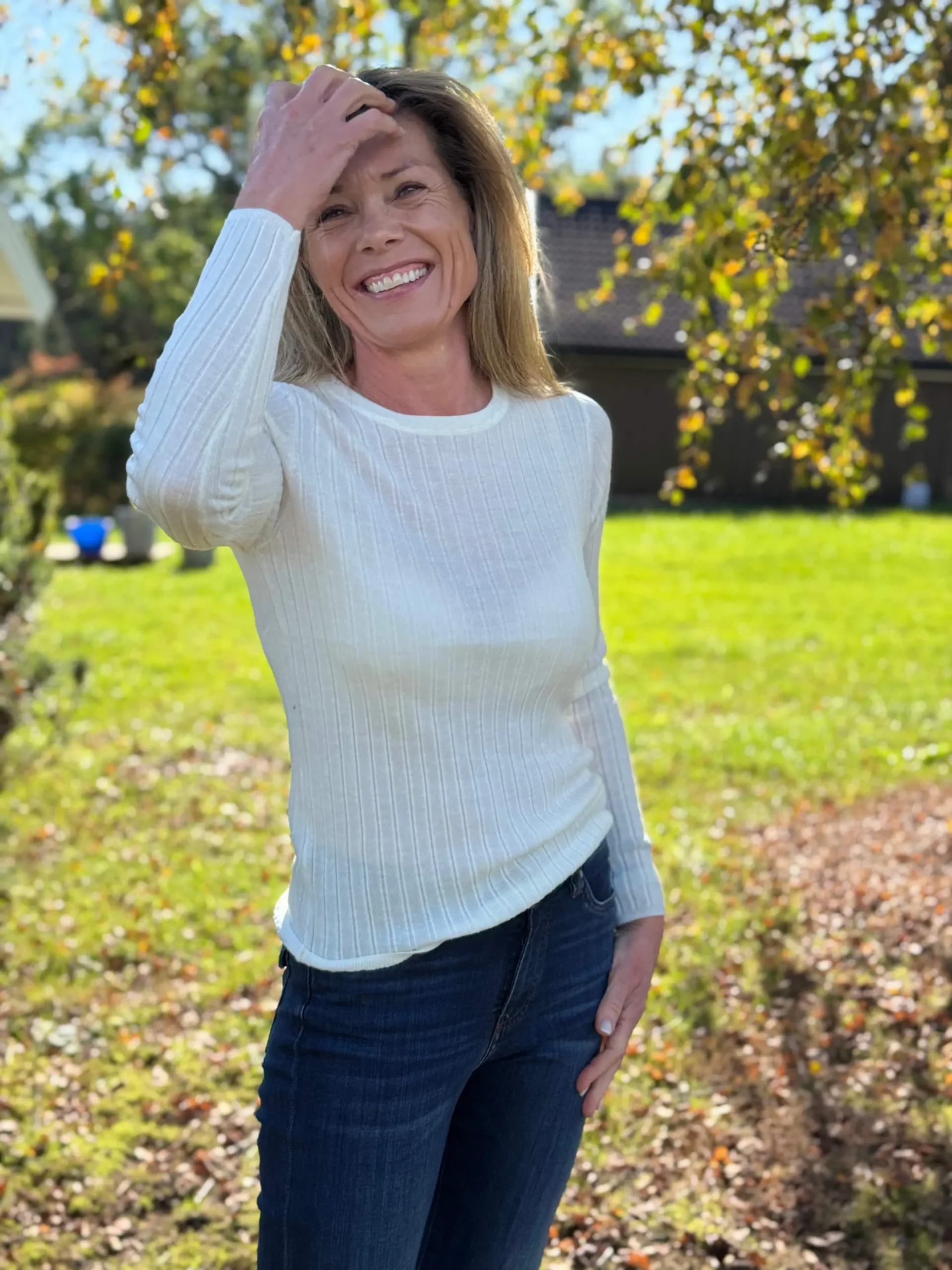 Henny Sweater i finribbet merinoull med rund hals og lange ermer. Smal og feminin passform i myk kvalitet – like fin alene som under blazer. En tidløs garderobefavoritt.
