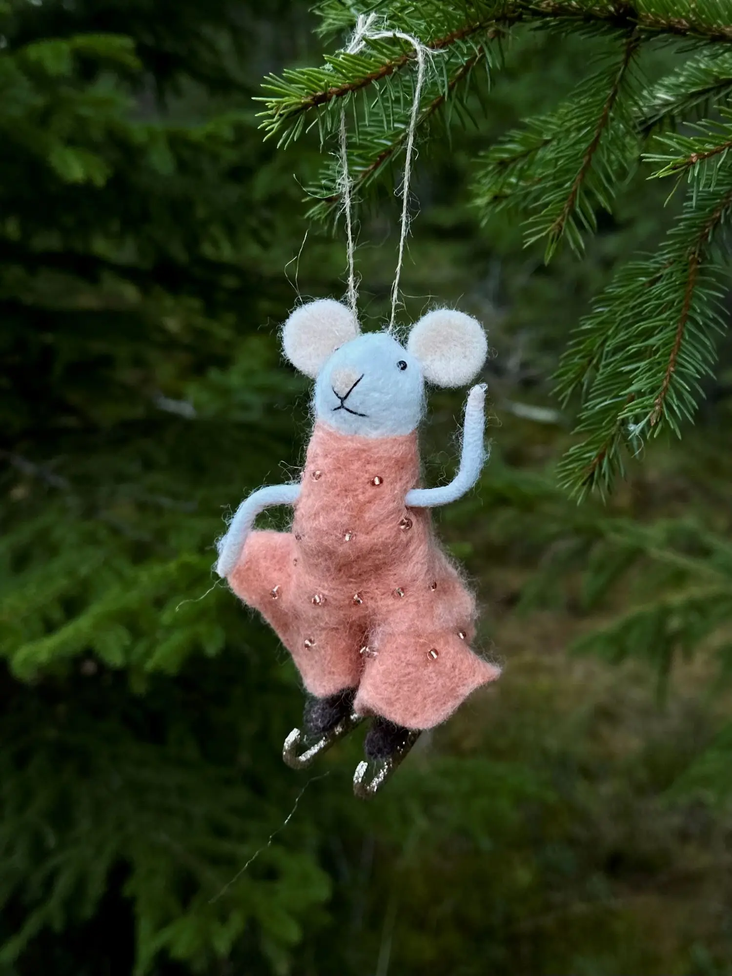 Ida Isprinsesse svinger seg grasiøst på isen iført en rosa kjole med gullperler og skinnende gullskøyter. Like fin på juletreet som blant bordpynten. Lag deg en girlander fylt med mus eller gjem henne i julestrømpen. En koselig gave til den som elsker vinterens magi, eller som del av en musefamilie der alle får sin egen karakter!