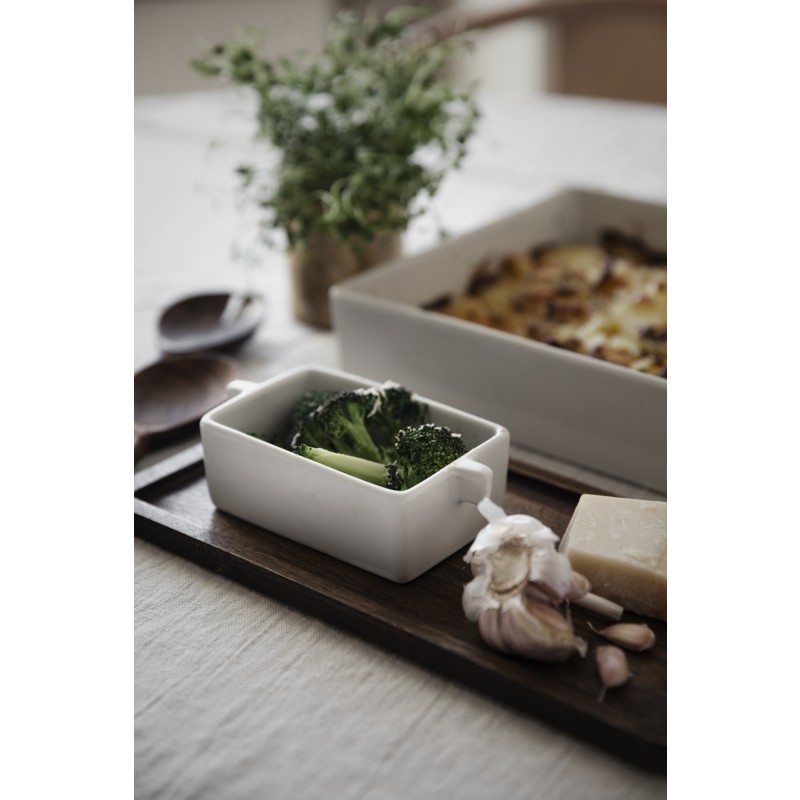 Server maten i en ildfast form fra Ernst. Denne kan brukes i alle typer ovner, inkludert mikrobølgeovn. Hvis den har stått i kjøleskapet eller er kald, skal den ikke settes direkte i mikrobølgeovnen.