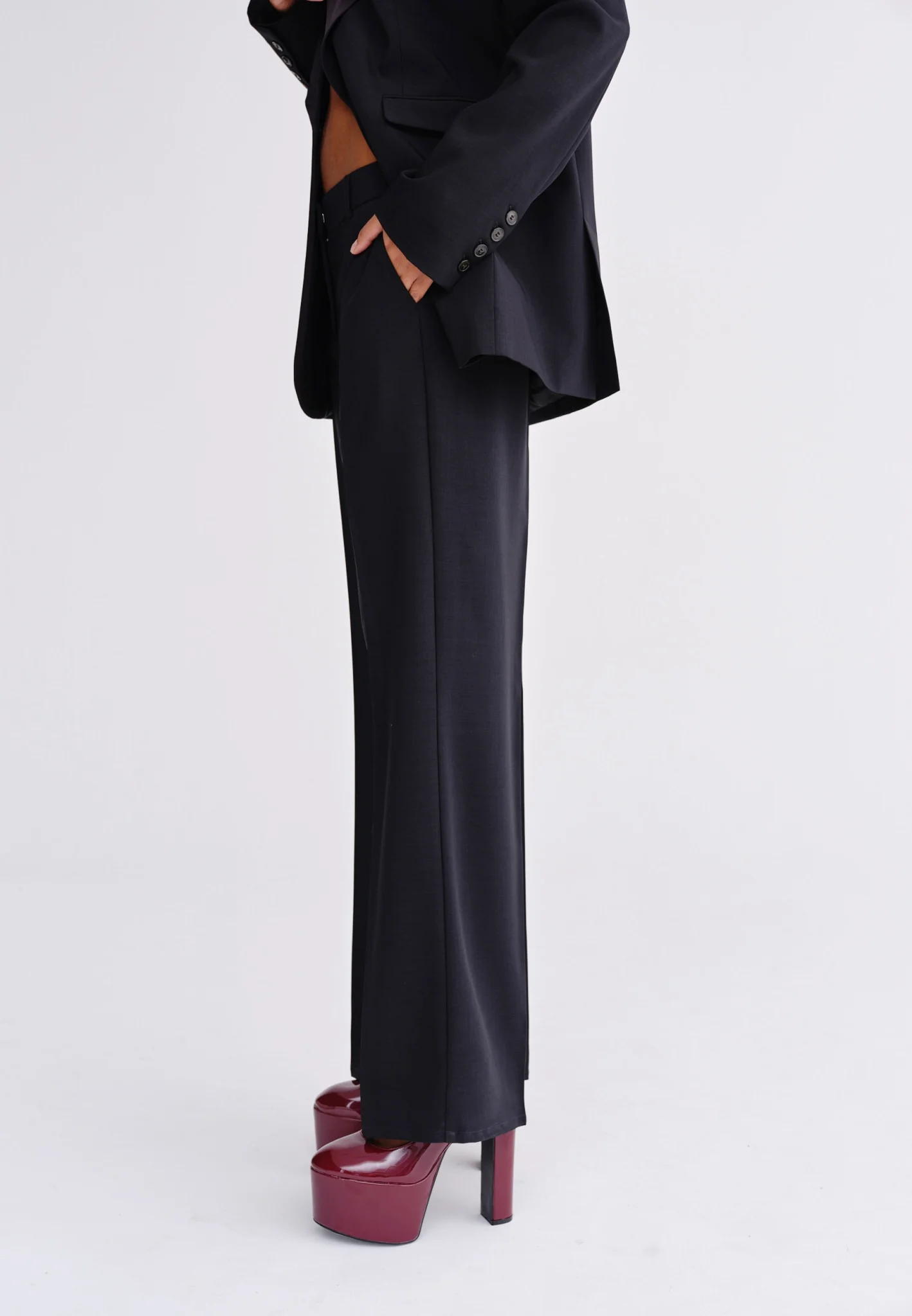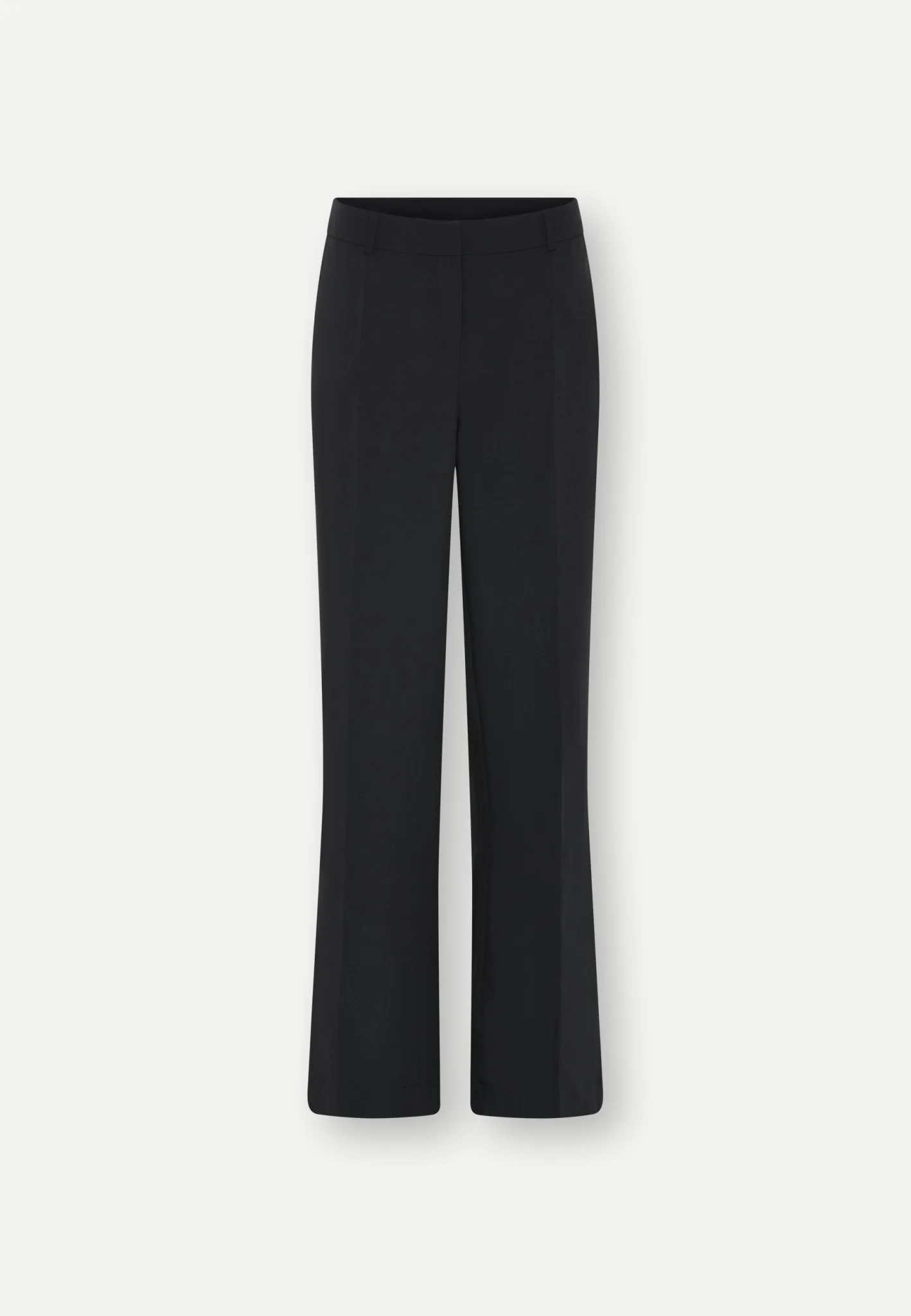 Klassisk dressbukse fra Herskind! Den har vide ben og lavt liv, pressefolder foran og bak, innsnitt bak, to funksjonelle sidelommer og to falske enkle paspellommer.