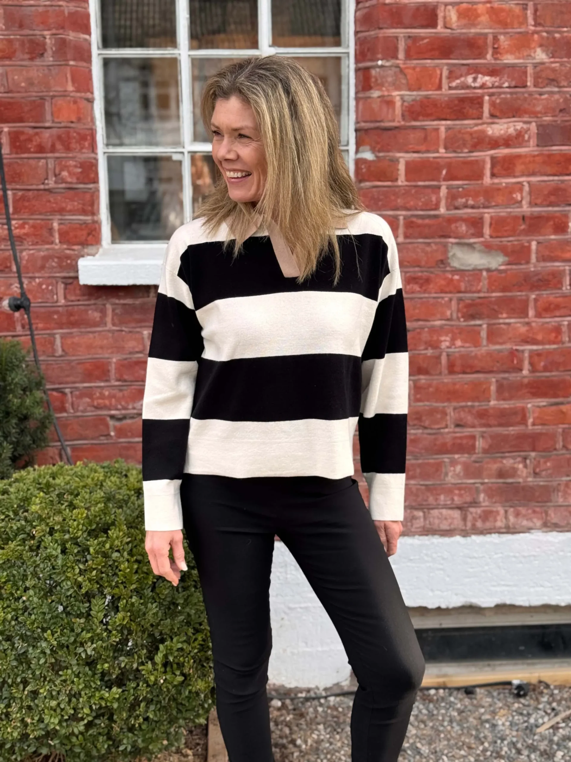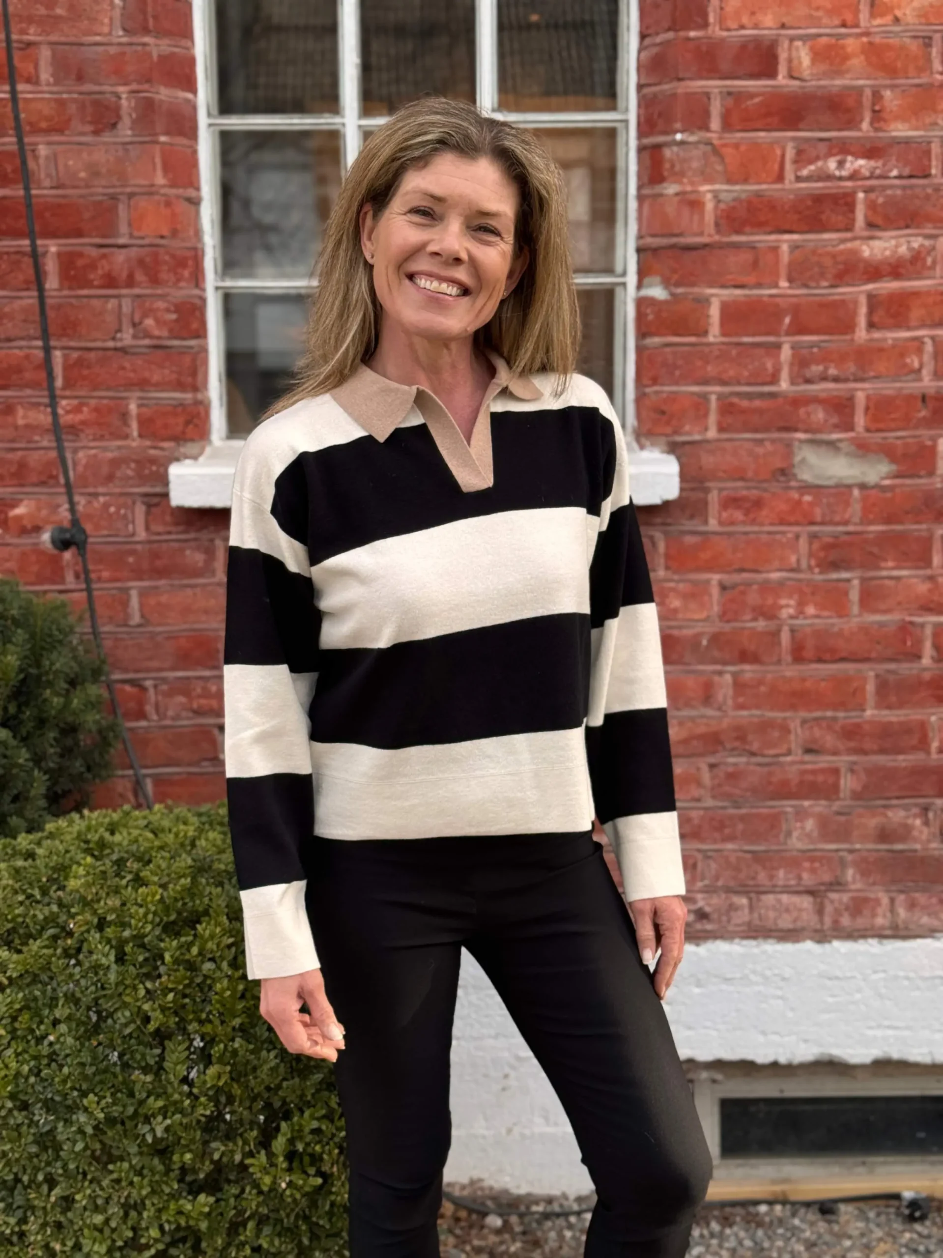 Stilig strikkegenser med striper fra One & Other. Genseren har en trendy krage og en cropped passform, perfekt for både skjørt og bukse.