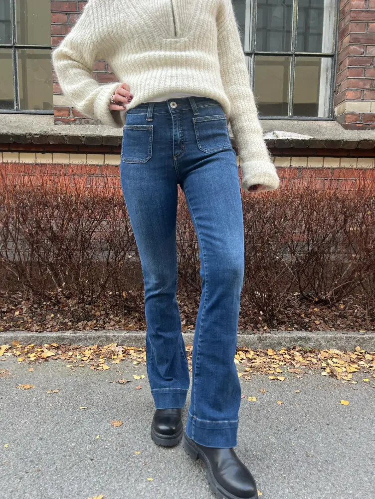 Våre favoritt jeans – Jim Jeans fra Denim Studio har ankommet i enda en farge, en mørkere denim blå. Flare jeans, med lommer foran og bak. Og i «Cashmere» finishmateriale som holder på varmen og er spesielt mykt. Her har du jeans i herlig kvalitet som du har i mange år!