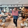 Denne røde tote-vesken er både praktisk og fin å se på. Den har røde og hvite striper, og er laget av resirkulert materiale med metallhåndtak og bambusgrep. Vesken er både sterk og stilig, perfekt for shopping eller sommerens turer. Det er et must-have tilbehør for sommeren.