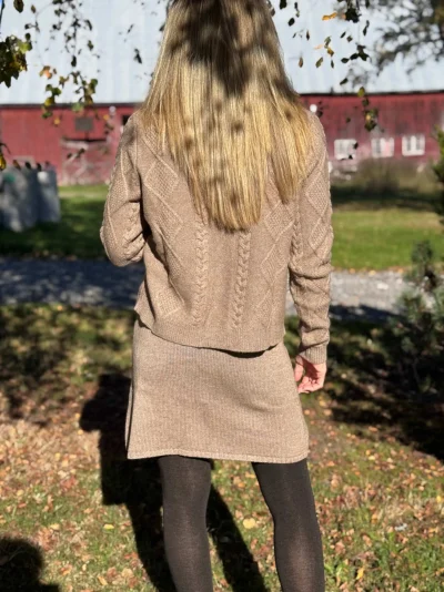 Kort strikket skjørt i en myk blanding av lammeull og tencel. Den elastiske linningen gir en behagelig passform, mens det minimalistiske designet skaper et stilrent uttrykk. Perfekt sammen med BS Marita for en moderne og balansert look.