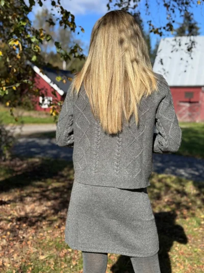 Kort strikket skjørt i en myk blanding av lammeull og tencel. Den elastiske linningen gir en behagelig passform, mens det minimalistiske designet skaper et stilrent uttrykk. Perfekt sammen med BS Marita for en moderne og balansert look.
