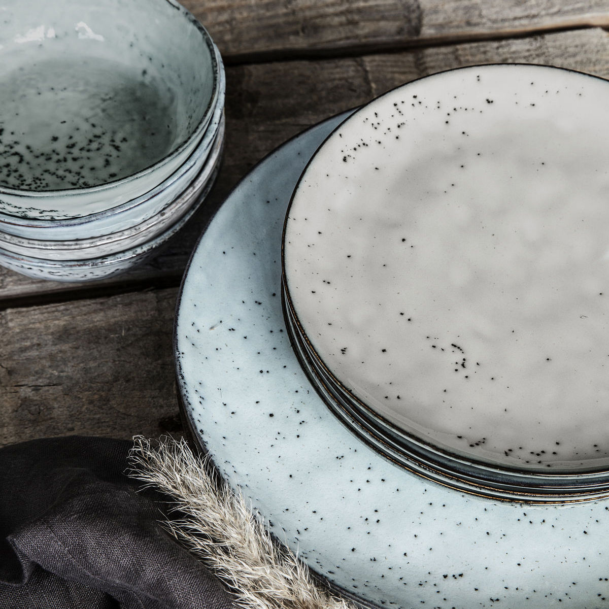 Håndlaget tallerken i keramikk fra House Doctor. Tallerkenen har en fin, rustikk glasur i grå og blå toner. Siden tallerkenen er håndlaget, kan du finne variasjoner i designet. Produktet tåler både oppvaskmaskin og mikrobølgeovn.