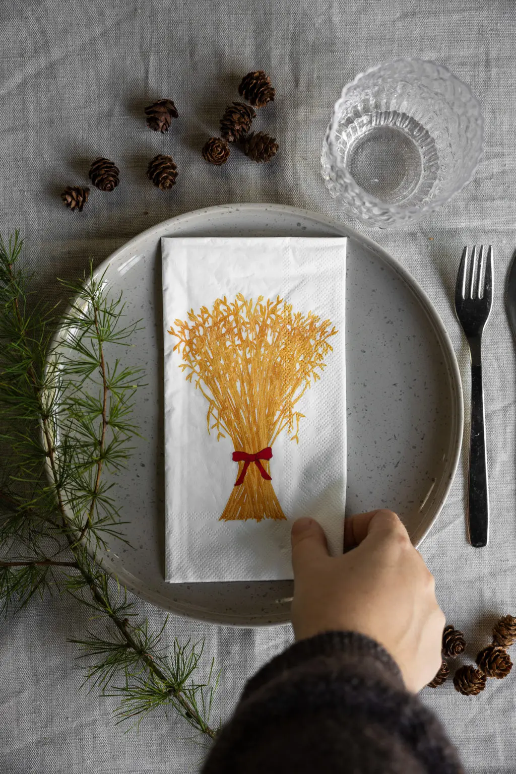Papirservietter med kornmotiv. Gir det lille ekstra til julebordet med en stilren og klassisk design som passer i alle hjem. Hver pakke inneholder 16 servietter.