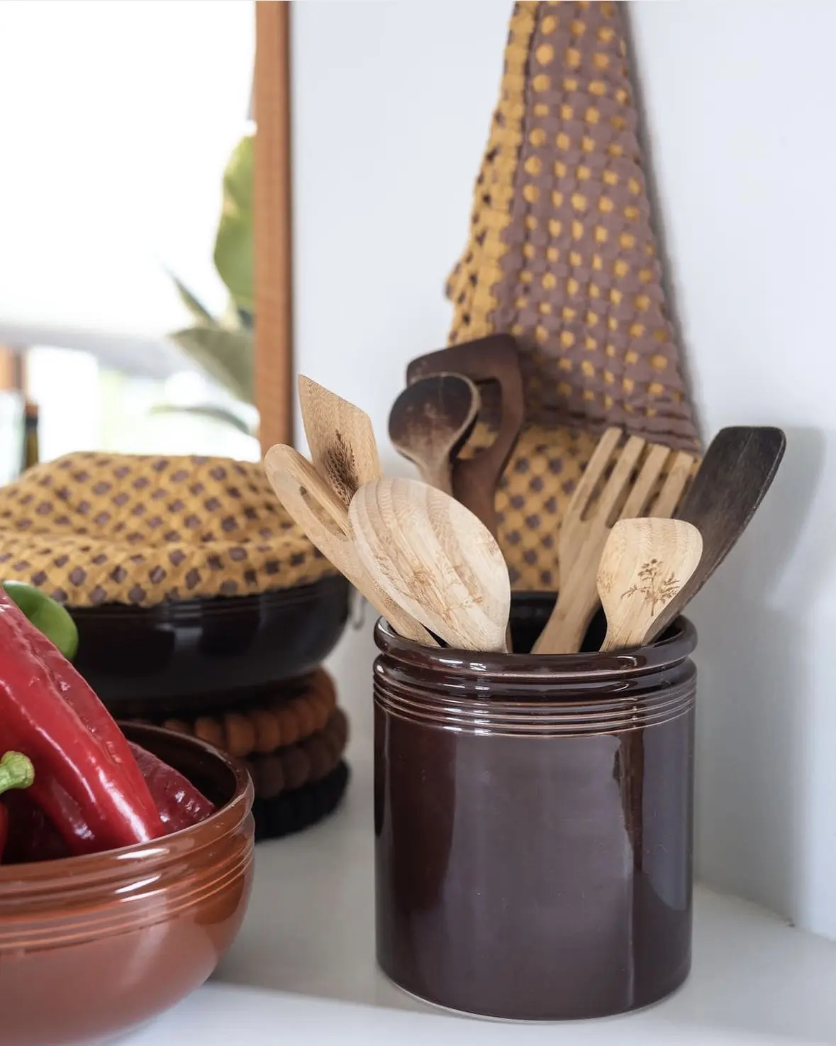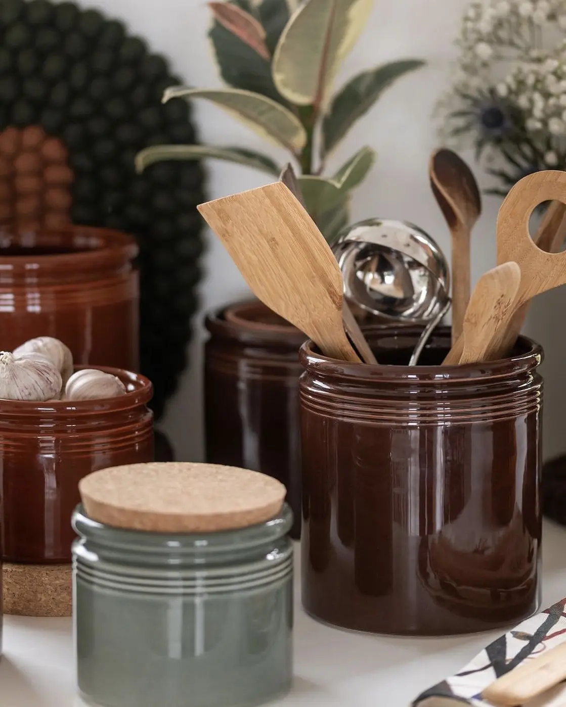 Denne vakre krukken er både praktisk og dekorativ – perfekt til mat, kjøkkenredskaper eller planter. Kjøp med et korklokk i tilhørende størrelse, for å tiltrekke fuktighet, som forlenger holdbarheten på hva enn du skulle ønske å oppbevare; knekkebrø, frø, frokostbalnding, til og med frukt og grønt…
