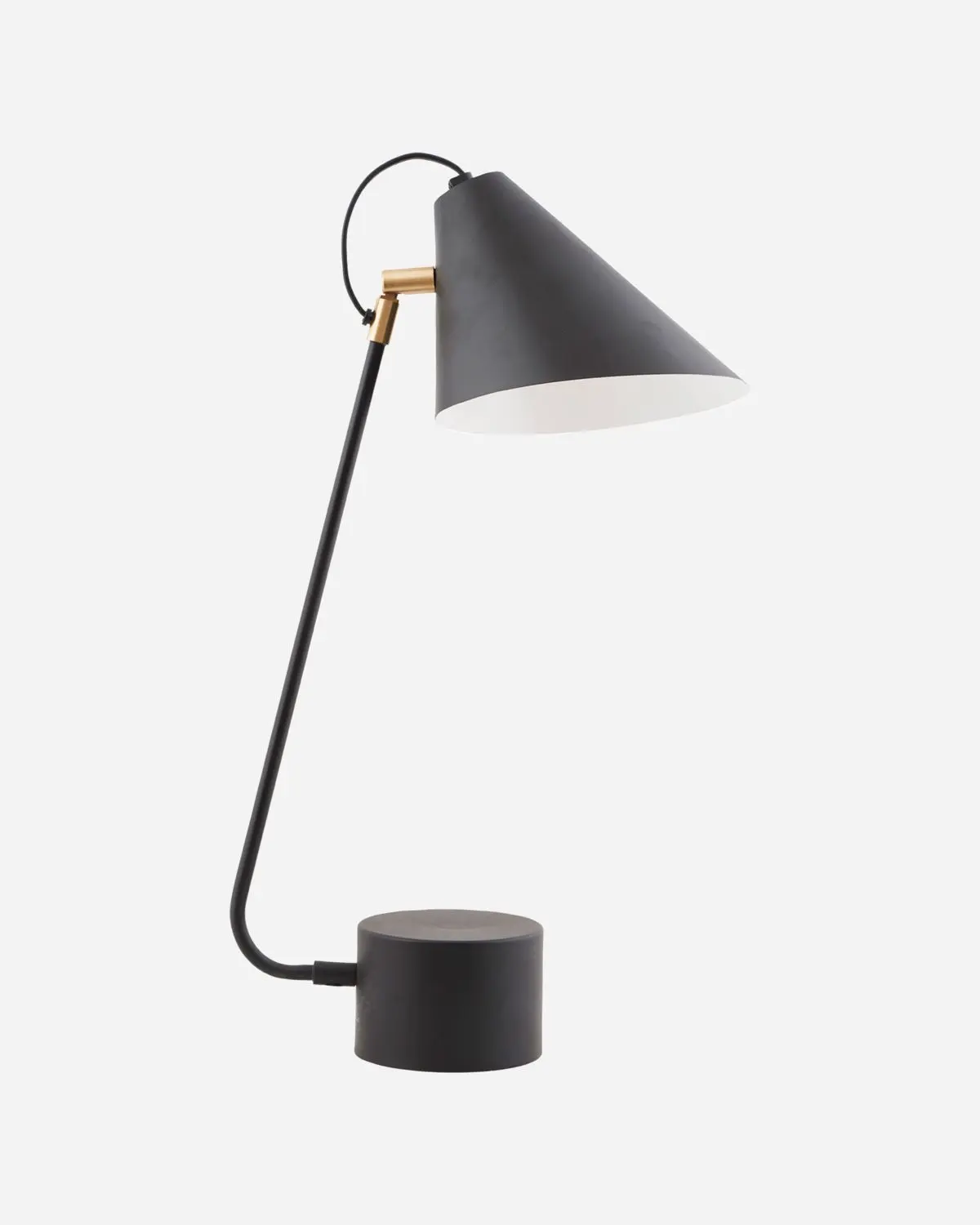 Bordlampen Club fra House Doctor er perfekt som et stemningsfullt innslag på en kommode, et lite sidebord ved sofaen eller som en flott lyskilde på skrivebordet ditt. Den kombiner lys med en matt svart farge for å skape en stilig kontrast. Lampen er laget av 98 % jern og 2 % messing. Lampehodet kan vippes opp og ned, slik at du kan justere lyset som du ønsker.