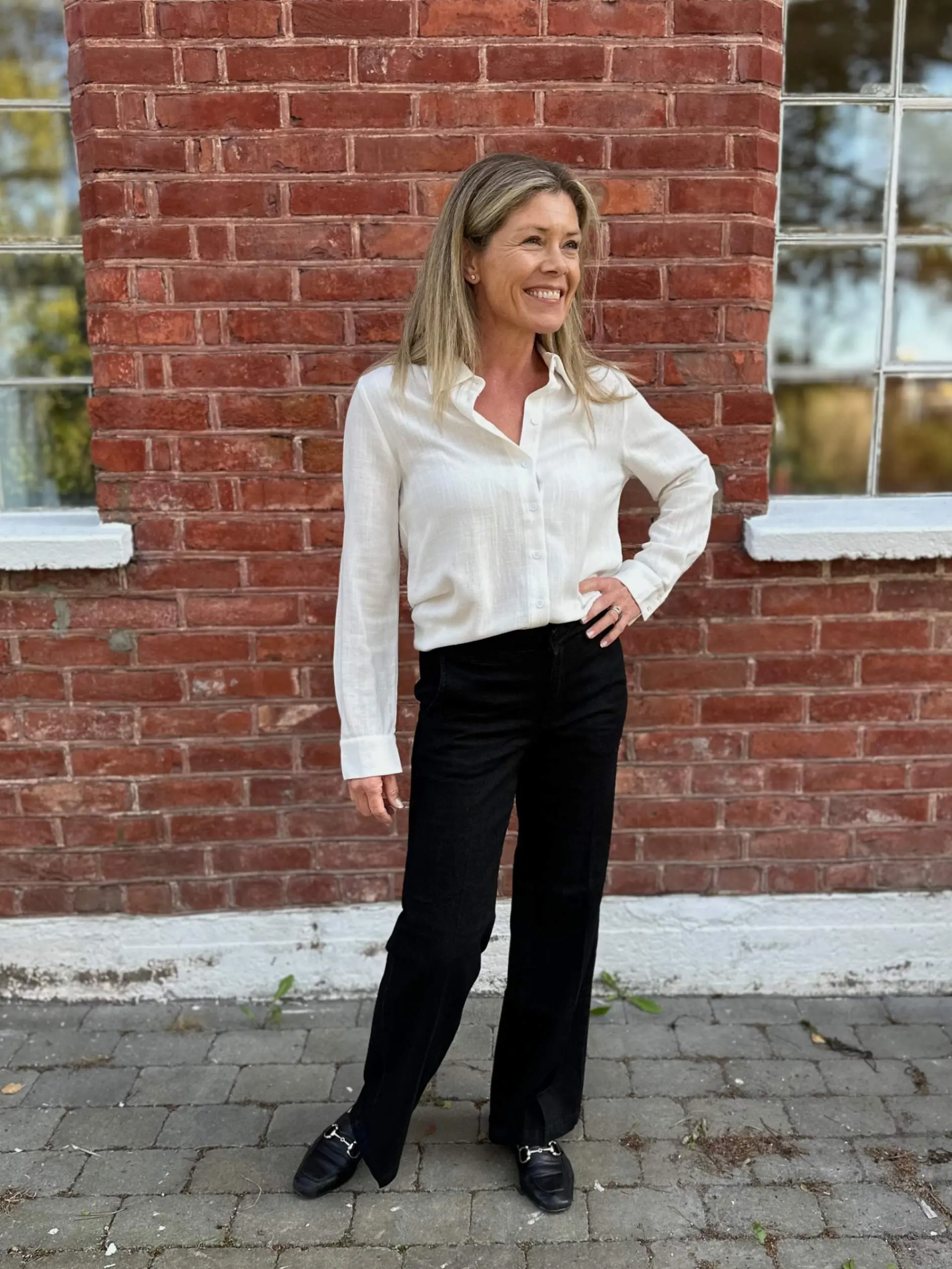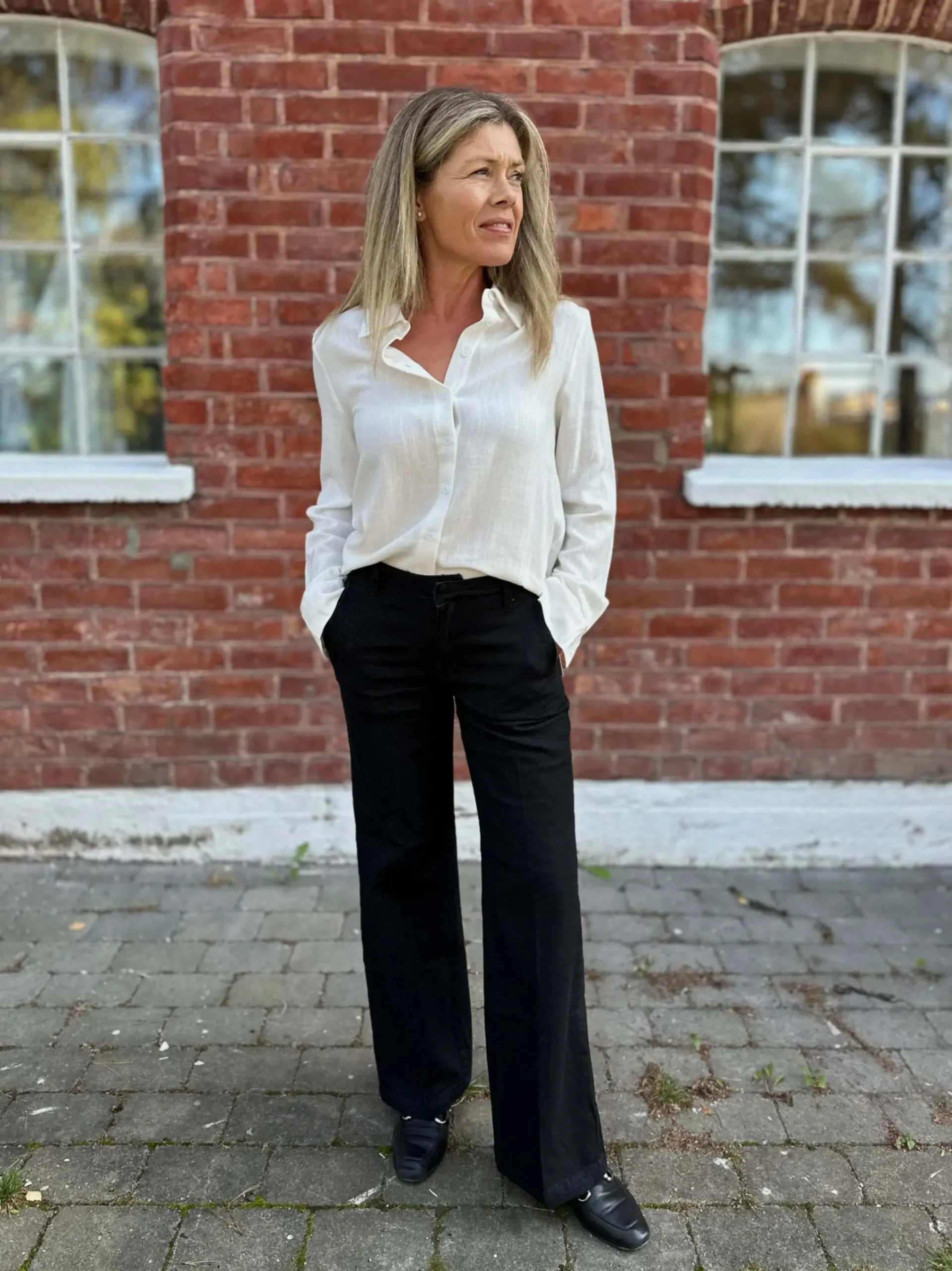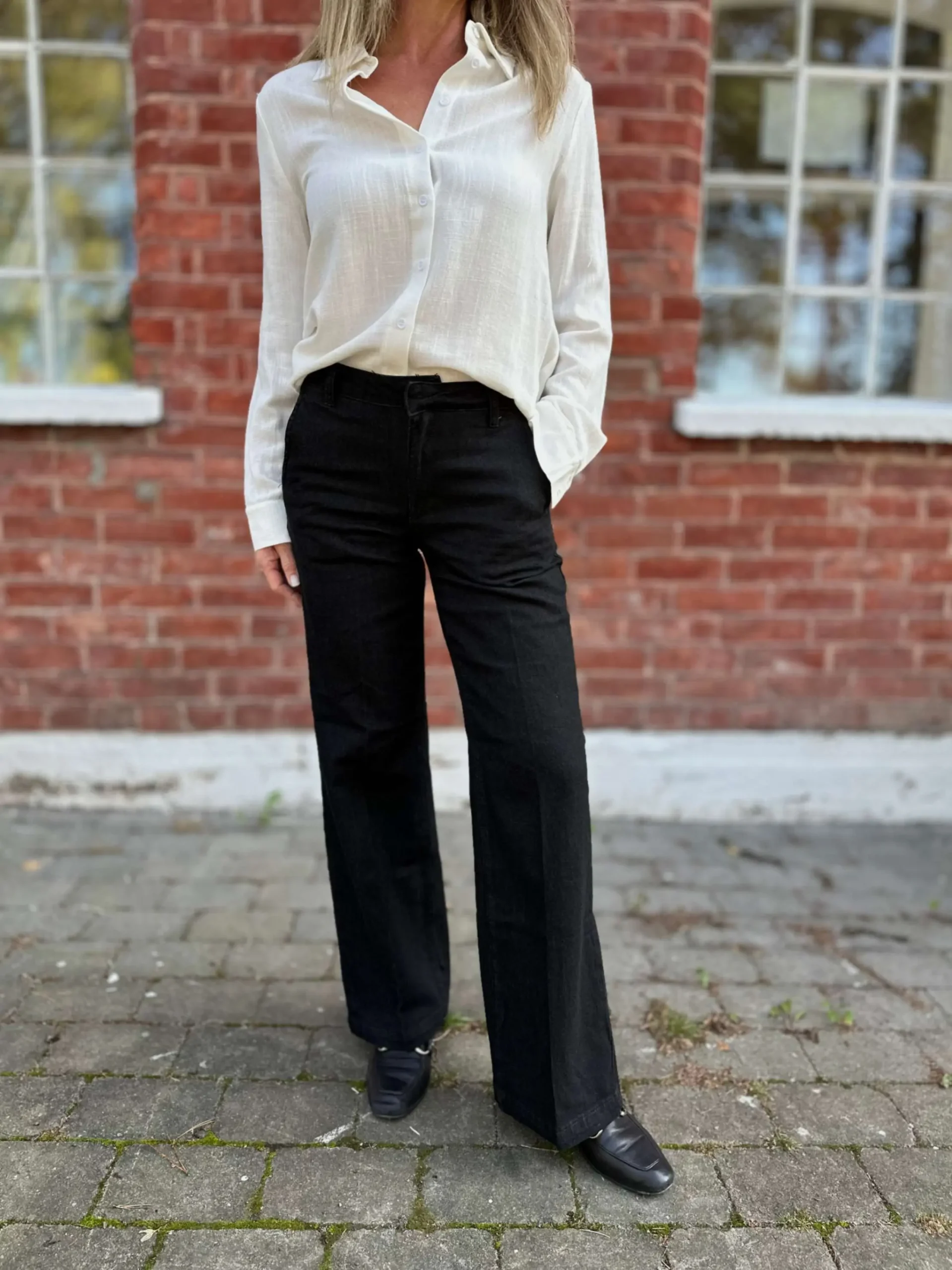 Lara Pants fra MEW er vide jeans i ultramykt stoff med komfortstretch. Med en løs passform, vide ben og middels høy midje, gir de en stilren denim-look og maksimal komfort. Lengde 32.