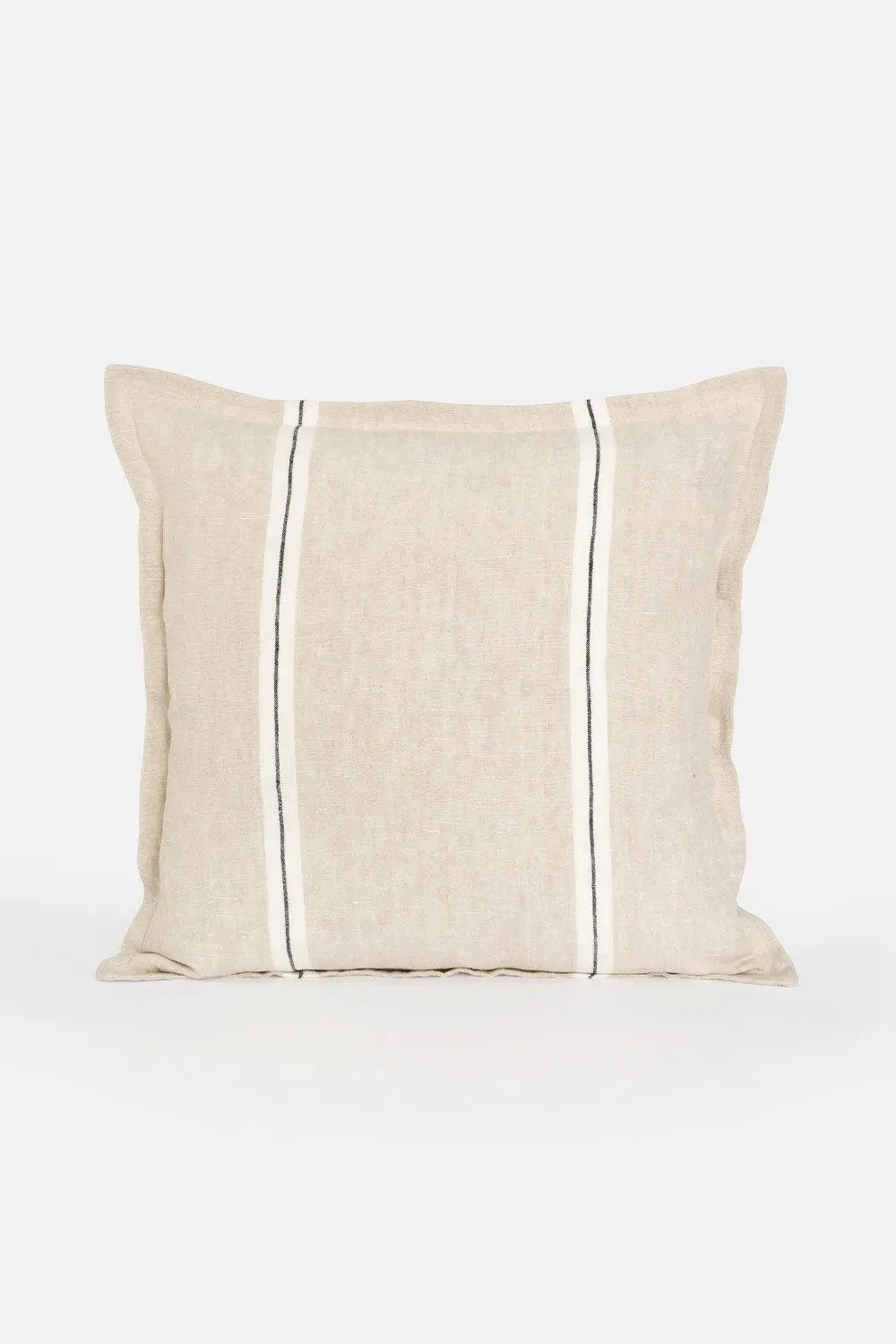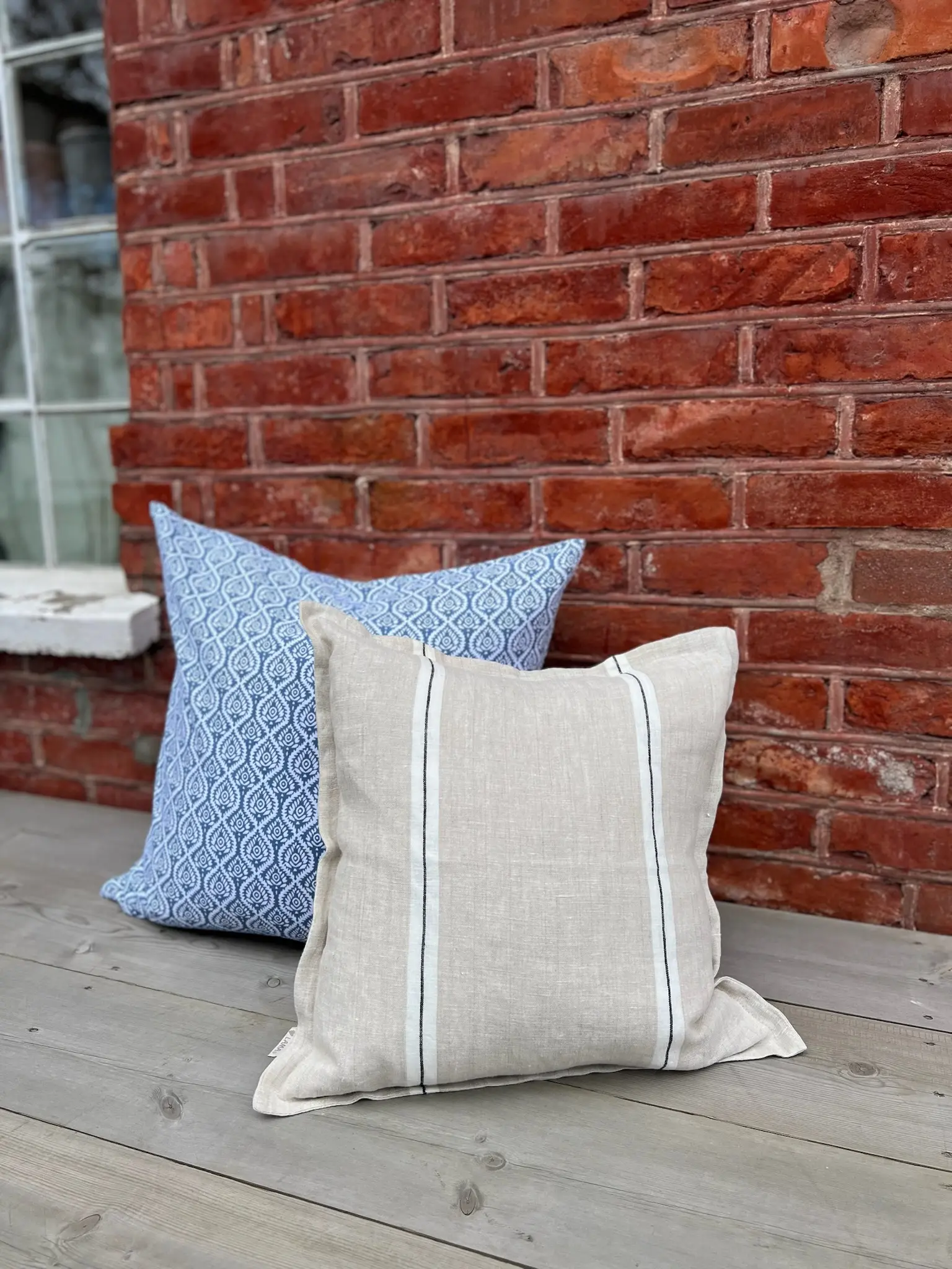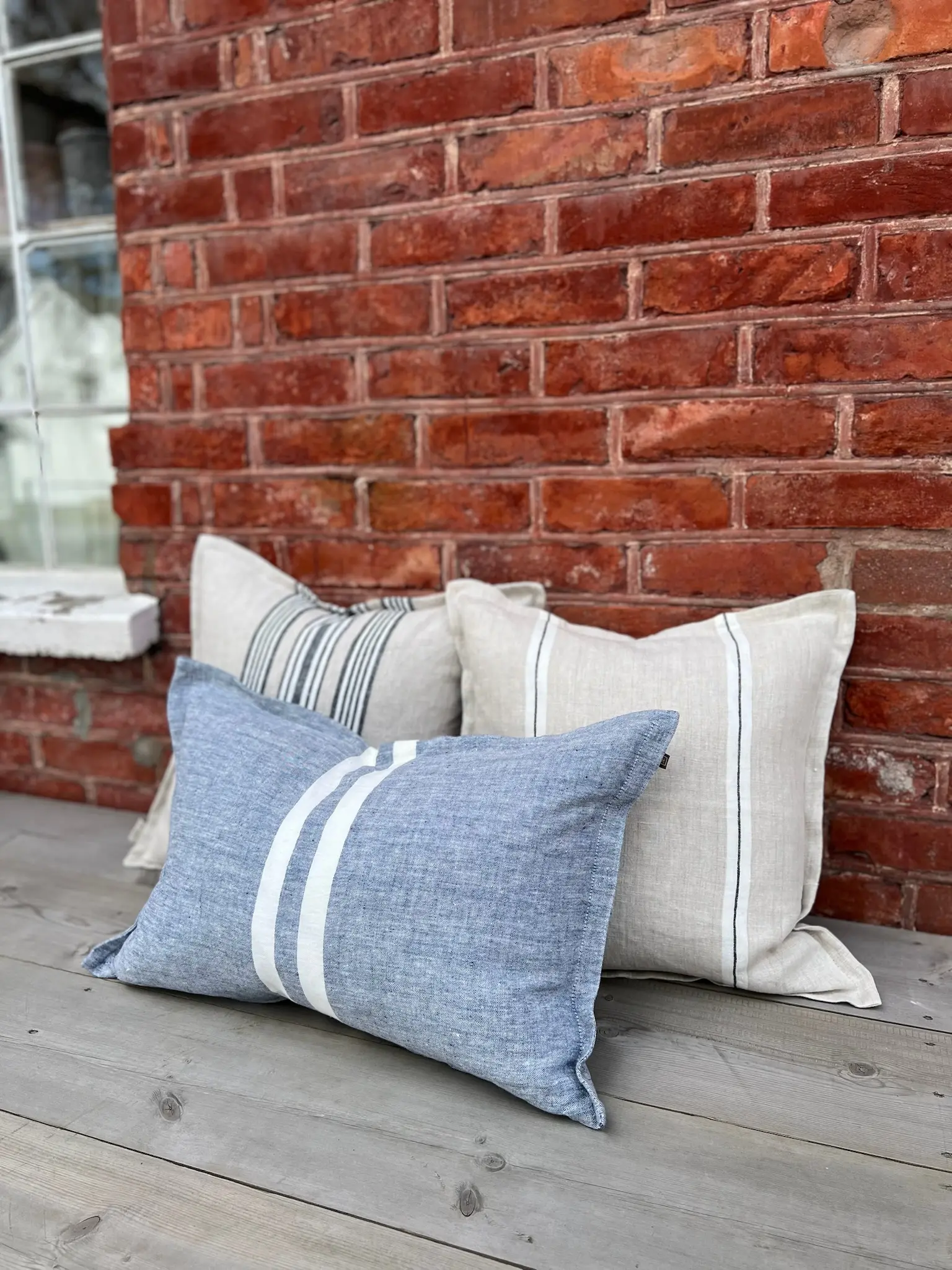 Klassisk linpute med minimalistisk preg. Naturbeige lin med to enkle, tynne striper i naturhvitt og sort over midten av puten. Denne puten er flott å style flere like samlet, eller i kombinasjon med våre andre puter. Miks den med puter i andre materialer som fløyel eller skinn for en spennende kontrast.