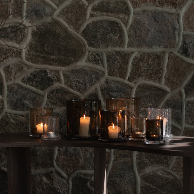 Lysestaken BUBBLE (liten) er en glasslanterne i fargen rust, med en solid fot i klart glass. En elegant glasslykt med små, dekorative luftbobler som gir et unikt og koselig preg. Den runde foten gjør at den står stødig, og sammen skaper de et varmt og innbydende lys som lyser opp de sene kveldene og gir en ekstra touch av stemning til ethvert rom.