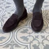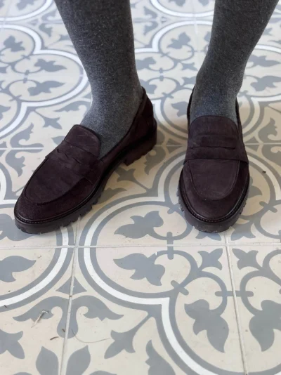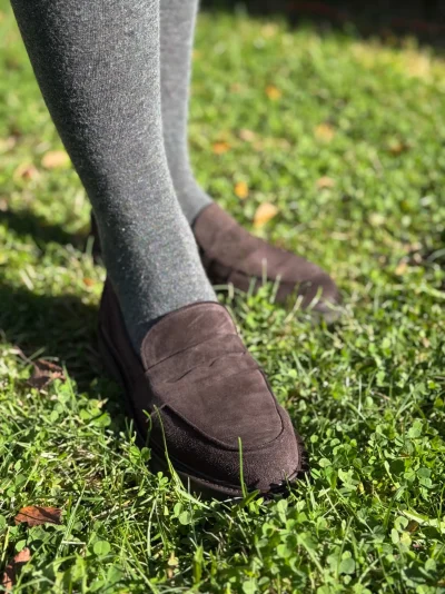 Håndlaget loafer i mykt, brunt semsket skinn. Modellen har enutskjæring foran og en robust såle som gir et moderne uttrykk. Skoen er laget med Sacchetto-konstruksjon, kjent for maksimal komfort og fleksibilitet. Den former seg etter foten og gjør hvert steg behagelig.