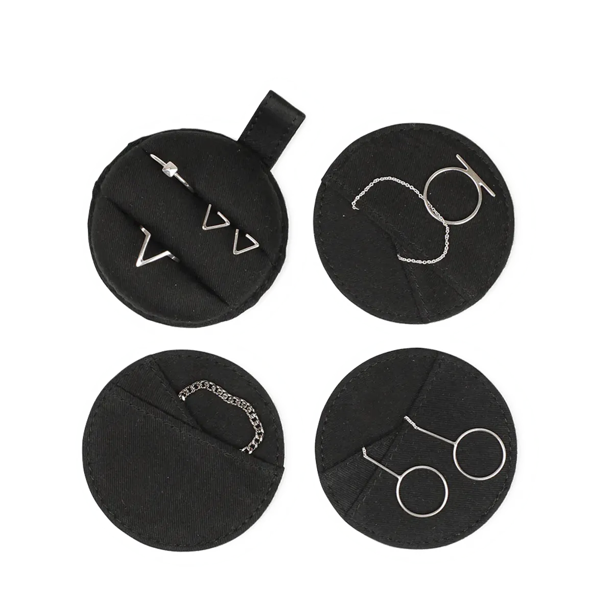 Smykkeskrin fra Markberg. Perfekt til on-the-go anledninger. Legg den i veska uten å bekymre deg for lite plass, pakk den med på reise, eller gi den som gave. I skrinet finner du 3 flate smykkeputer med 2 lommer i hver, for ringer, øredobber og halskjeder. Det er også 1 tykk smykkepute for tynne ringer og øredobber. Formen er fast, og lukkes enkelt med glidelås.