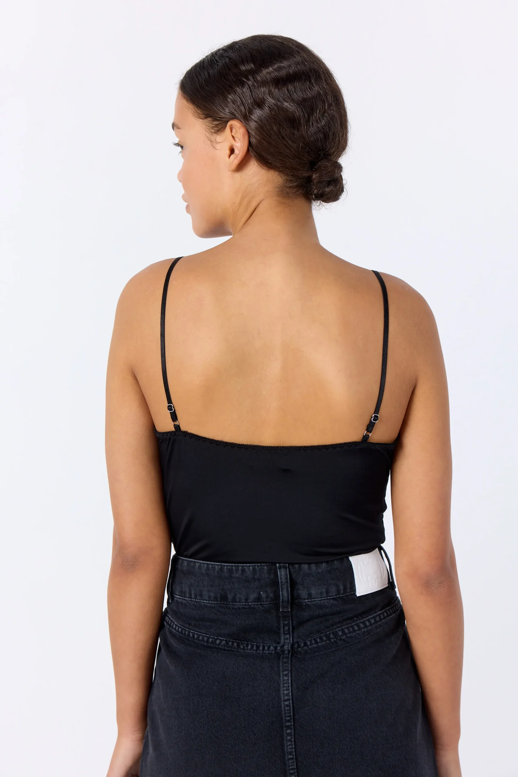 En fin klassisk topp designet med justerbare stropper. Bruk den som en underskjorte gjennomsiktige kjoler, topper eller alene.