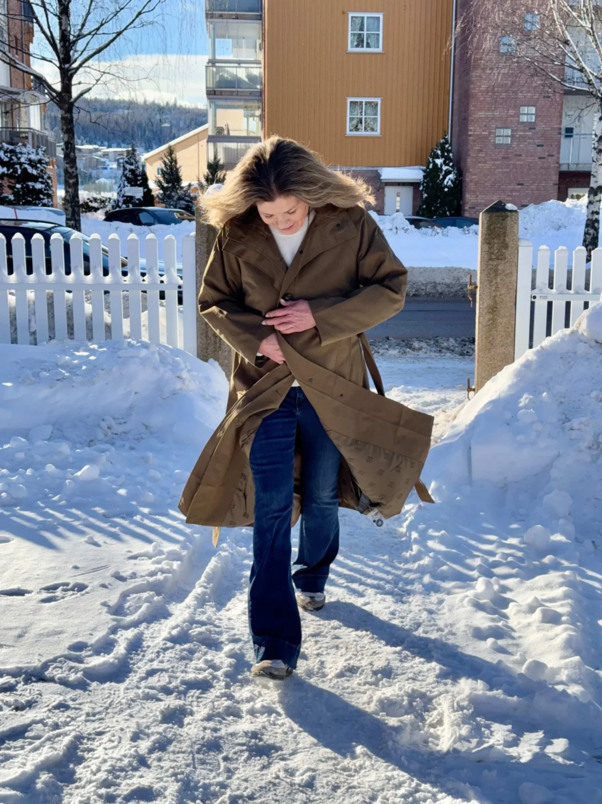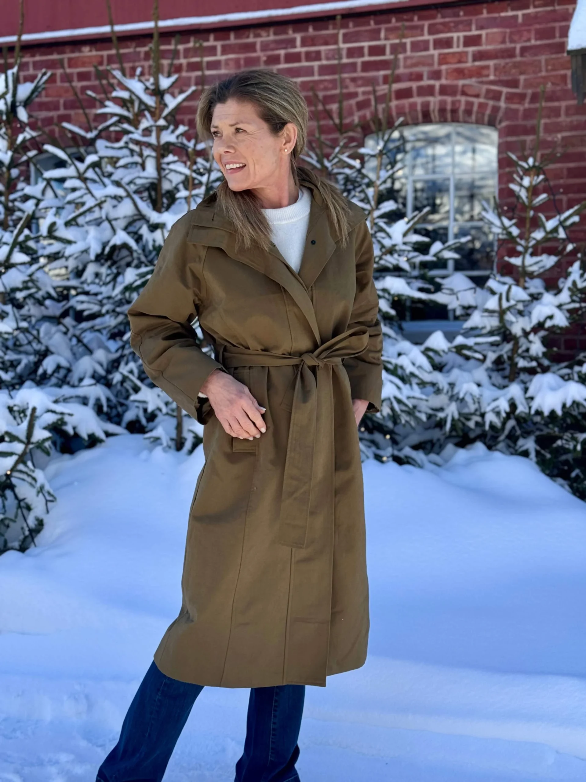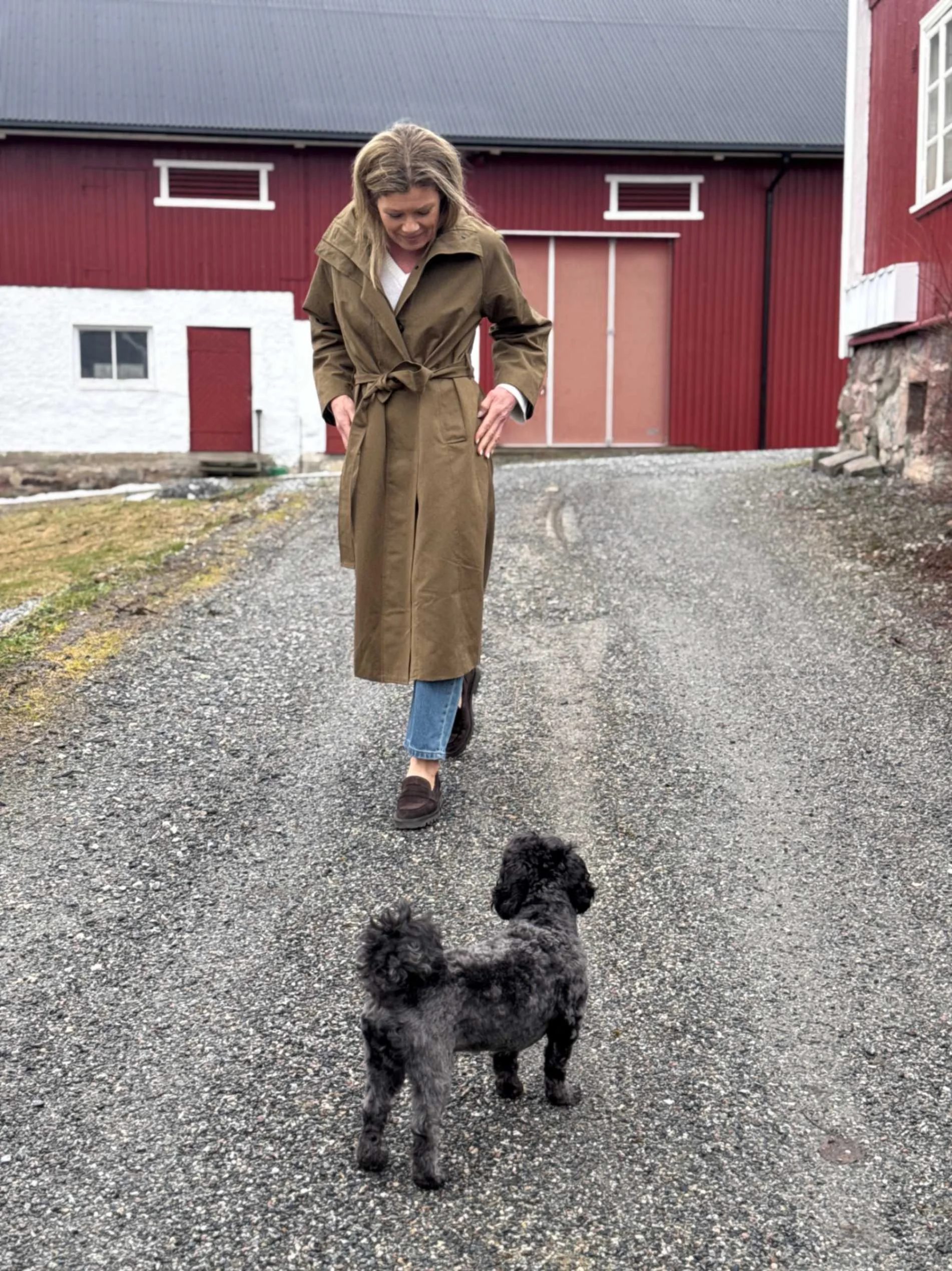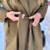 Lekker lang trenchcoat med en stilren høy krage og skjult knappelukking foran. Kåpen har sidelommer og et avtakbart knytebelte i livet. Et flott og allsidig plagg!