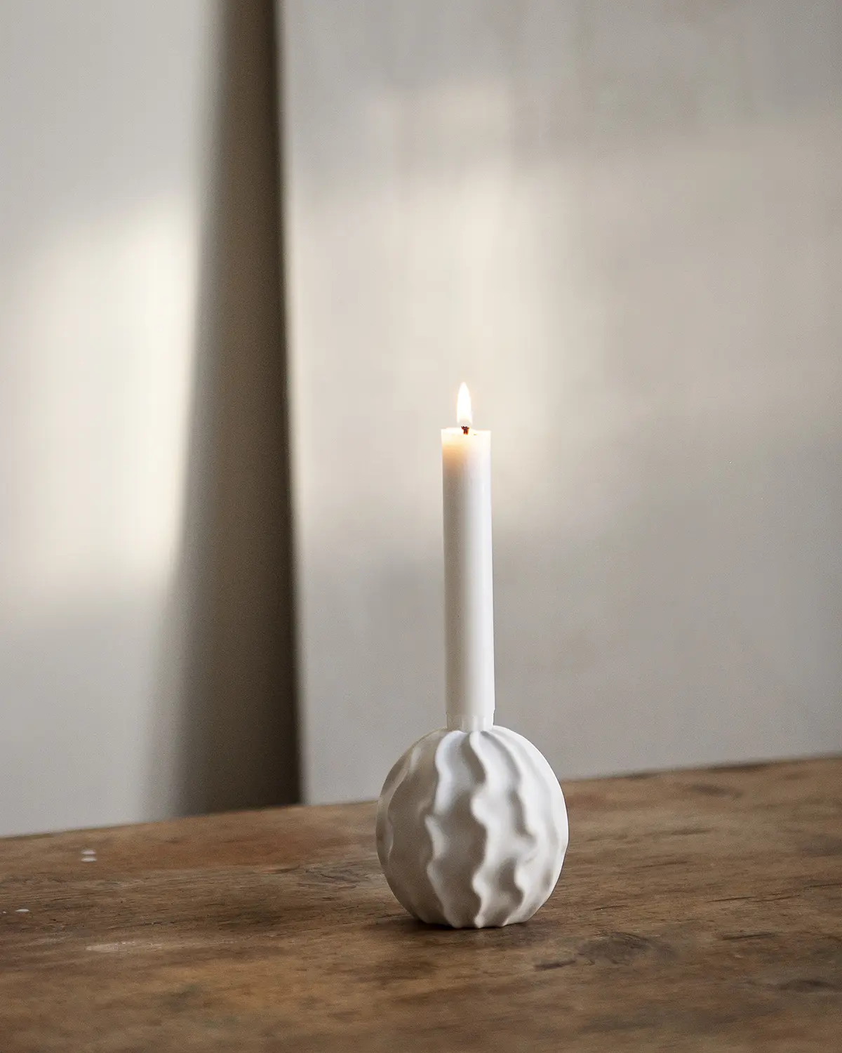 Denne lysestaken i naturlig keramikk, inspirert av naturens bølgende former, skaper en koselig atmosfære. Plasser den på salongbordet eller som en stilren detalj i bokhyllen. Håndlaget med Storefactorys signaturmatte finish, kan små ujevnheter forekomme, noe som gir hvert stykke unikt preg.