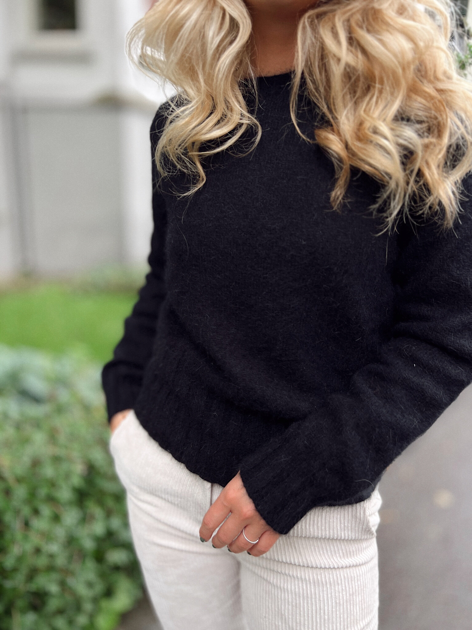 En klassisk og tidløs sort strikkegenser fra Rah Oslo. Genseren har en rett passform, med rund hals og ribbestrikk detaljer.