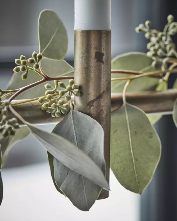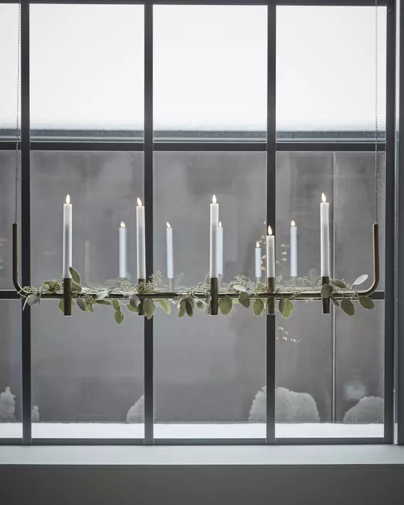 Maxi-lysestake fra House Doctor henges i taket og har plass til 5 LED-lys. Den kan pyntes med lys eller grener for å skape ønsket stemning, både til jul og resten av året.